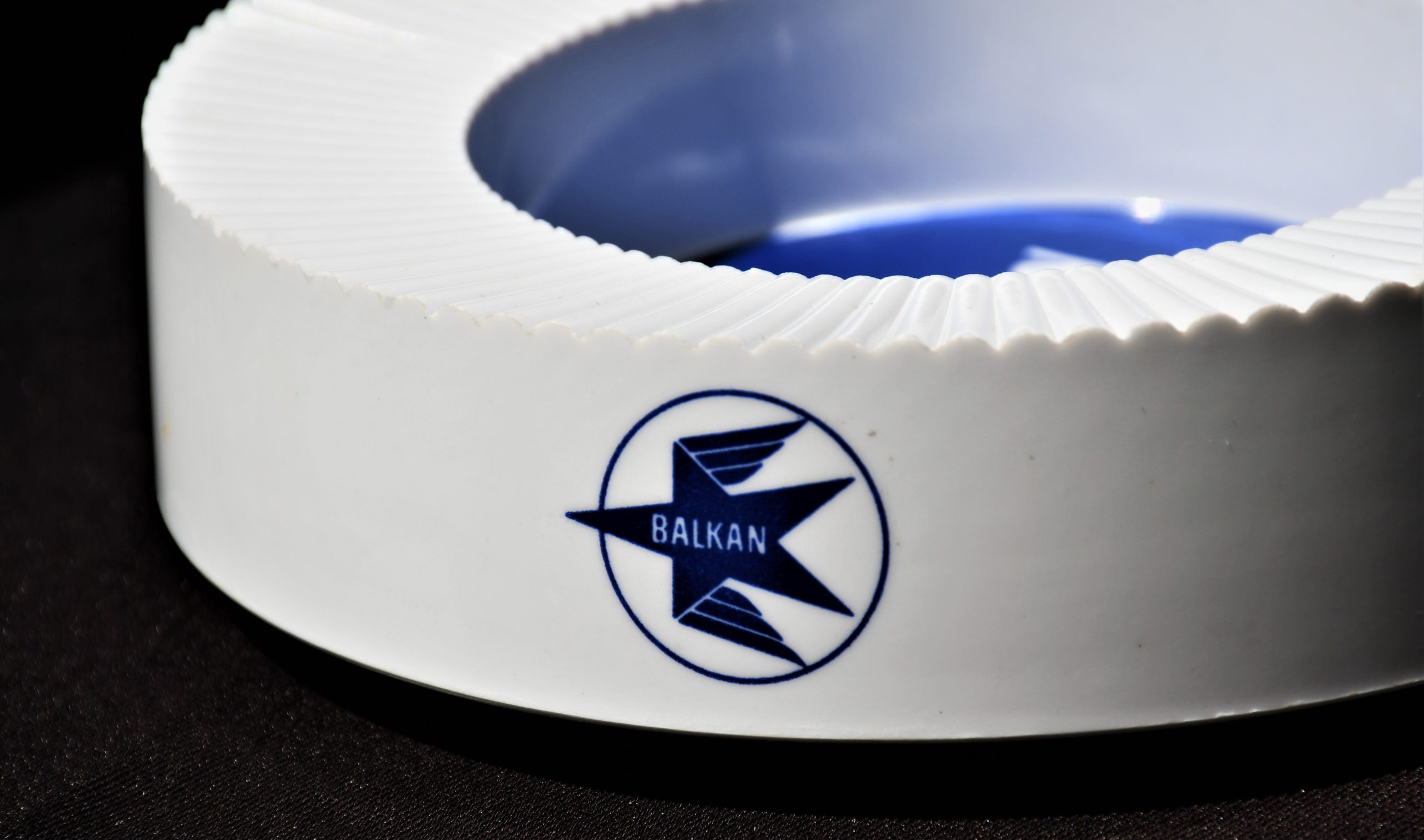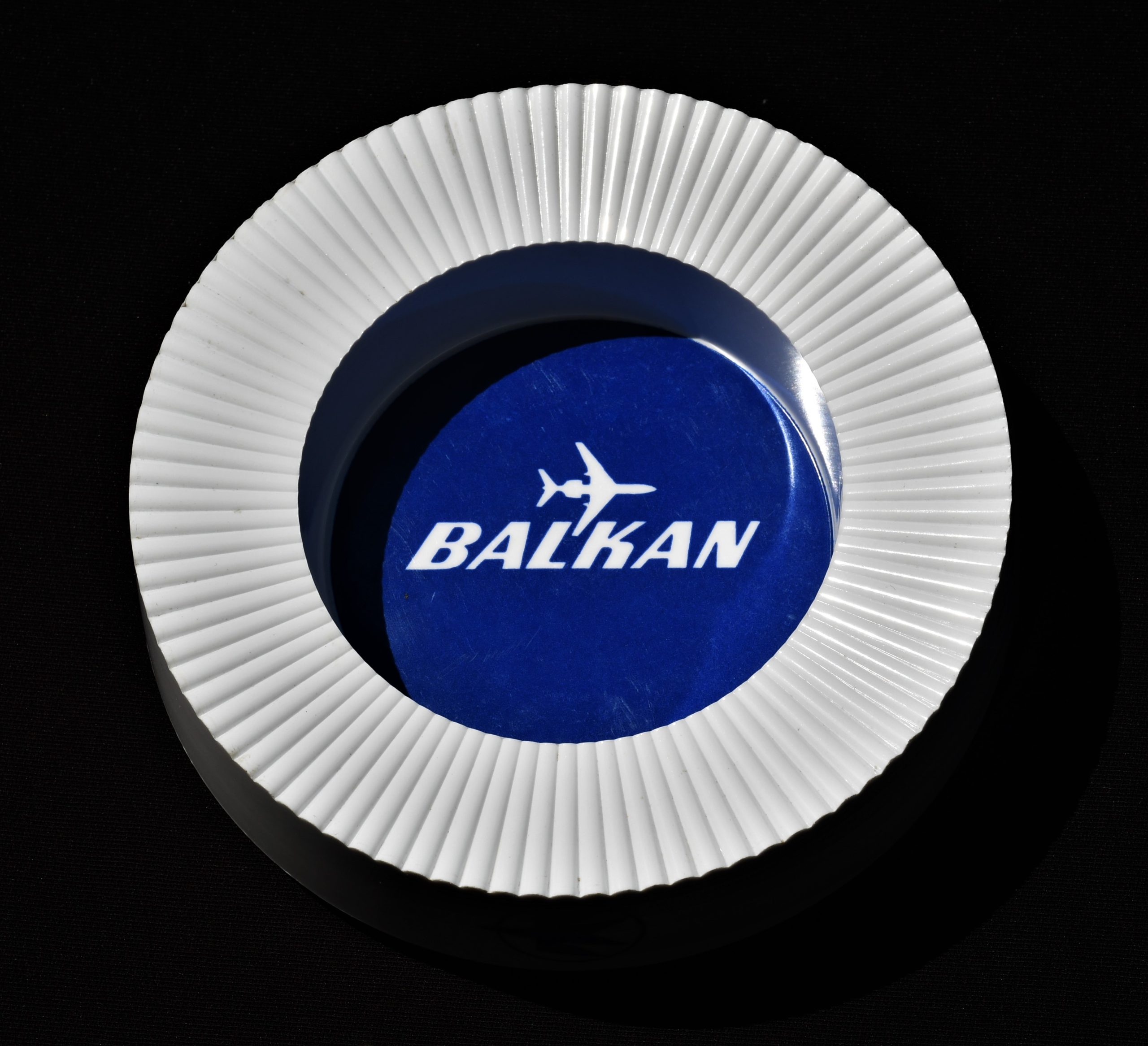 Прекрасен рекламен винтидж пепелник от 80-те. Спомен от несъществуващата вече авиокомпания „Балкан“.