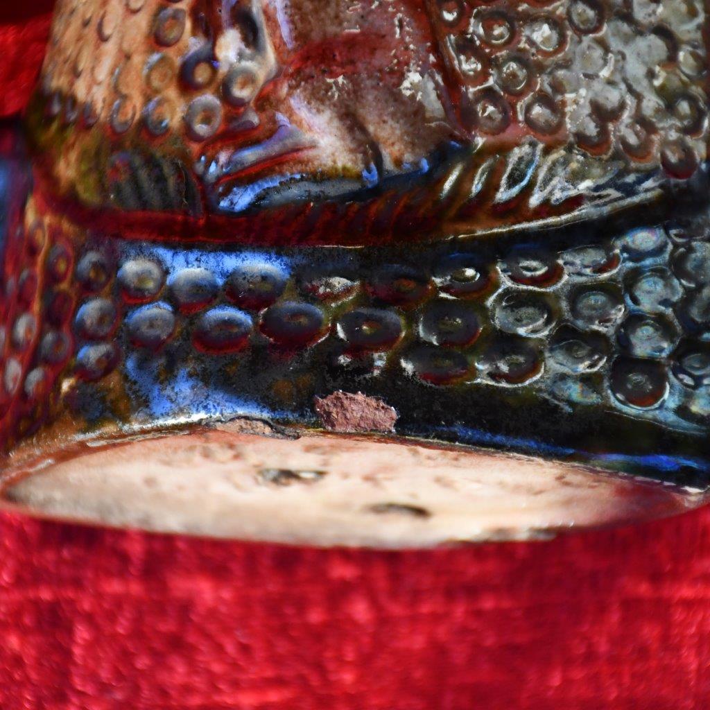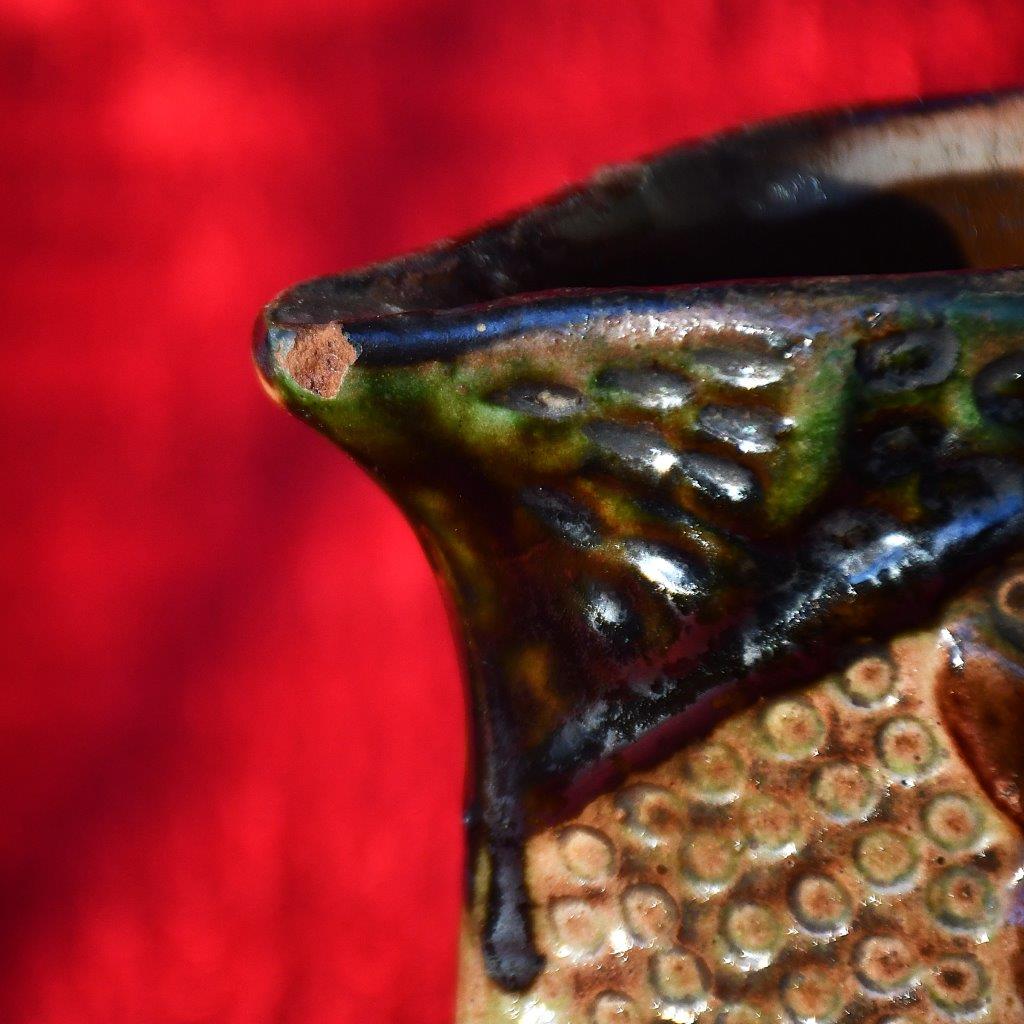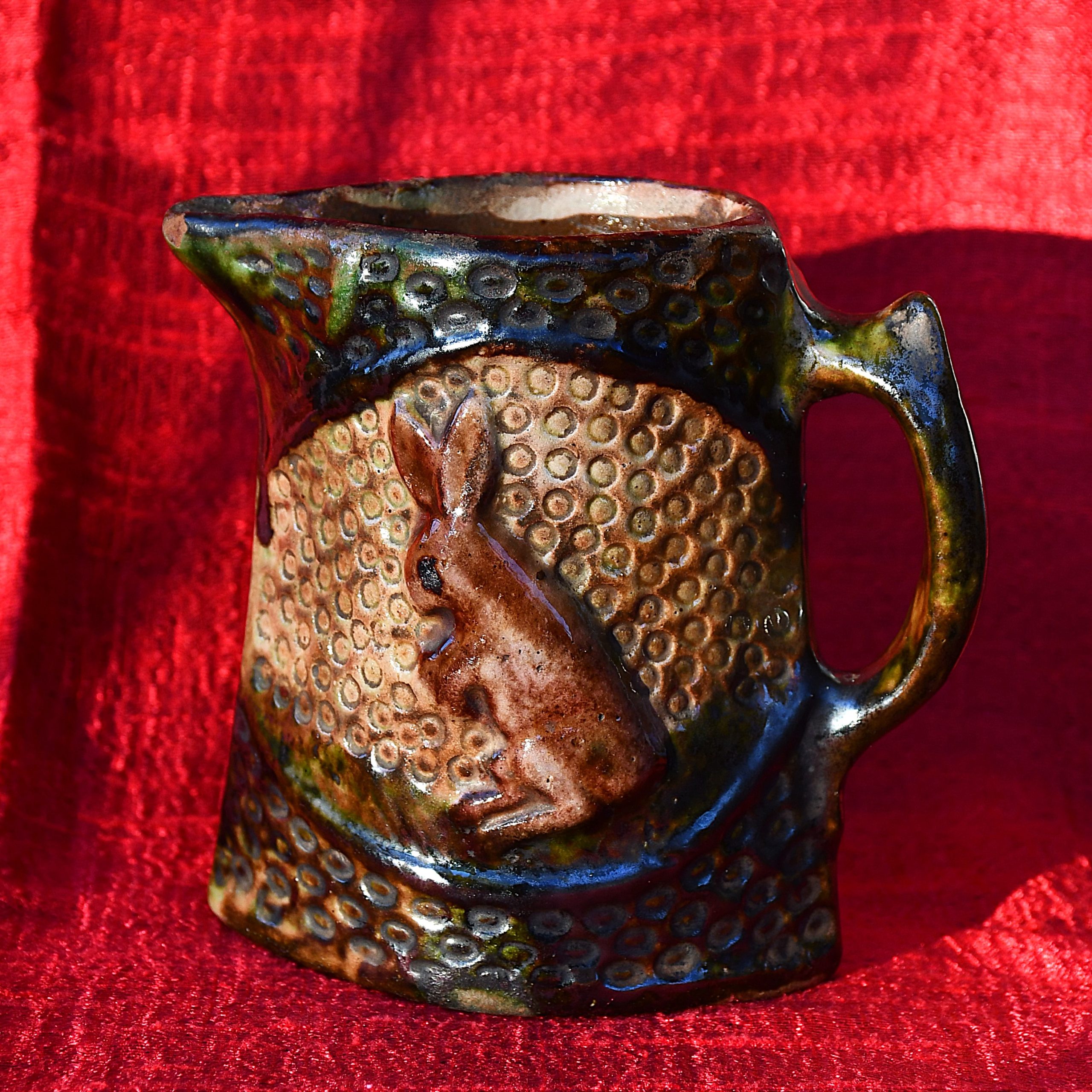 Изключително рядък дизайн и учудващо добре запазена. Много интересен и живописен занаятчийски продукт. Обичайно такива кани са се използвали и в кръчмите, и домакинствата за поднасяне на домашно вино.