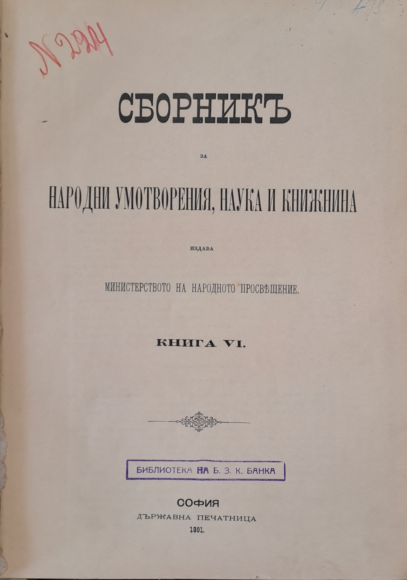 Сборникъ за народни умотворения, наука и книжнина, книга VІ