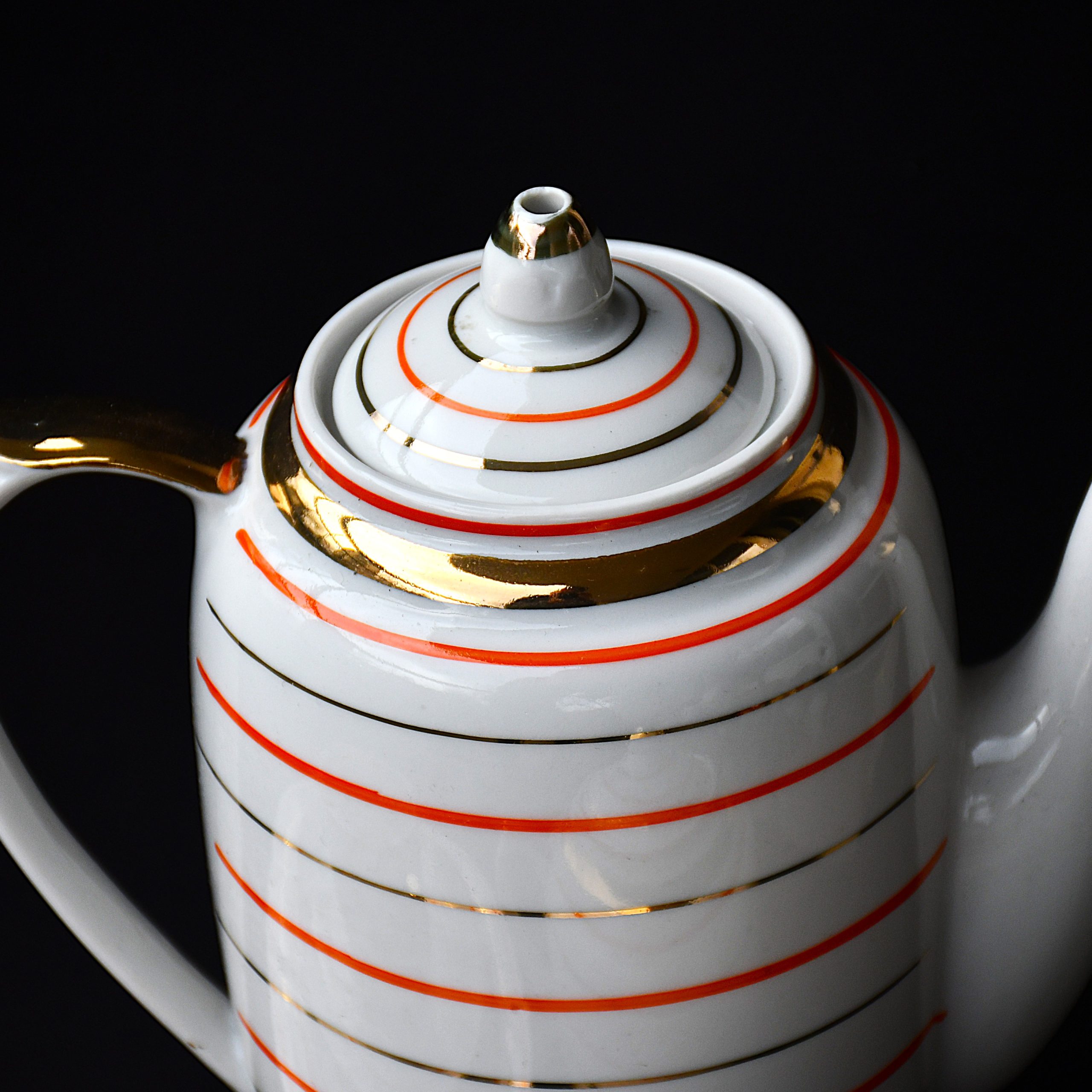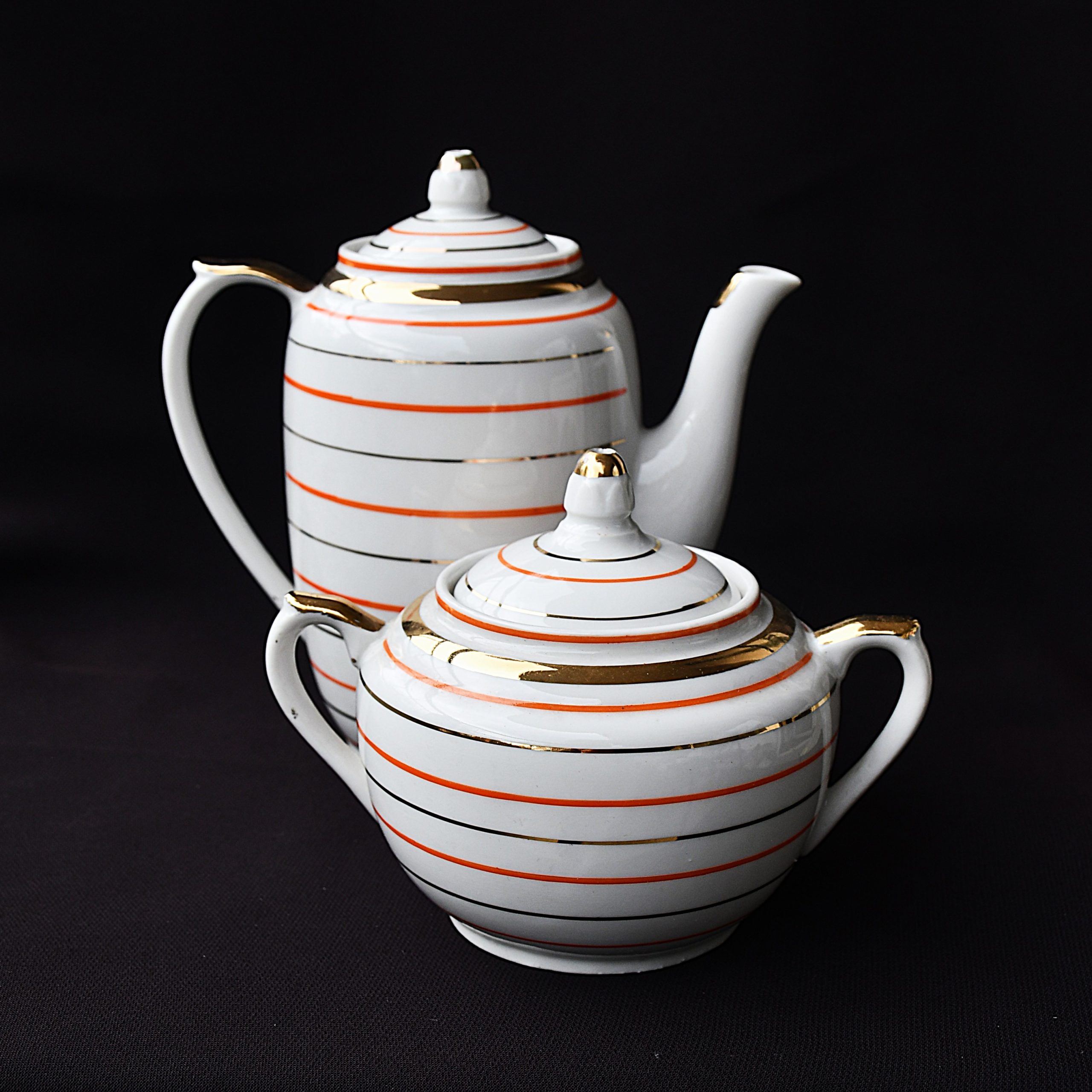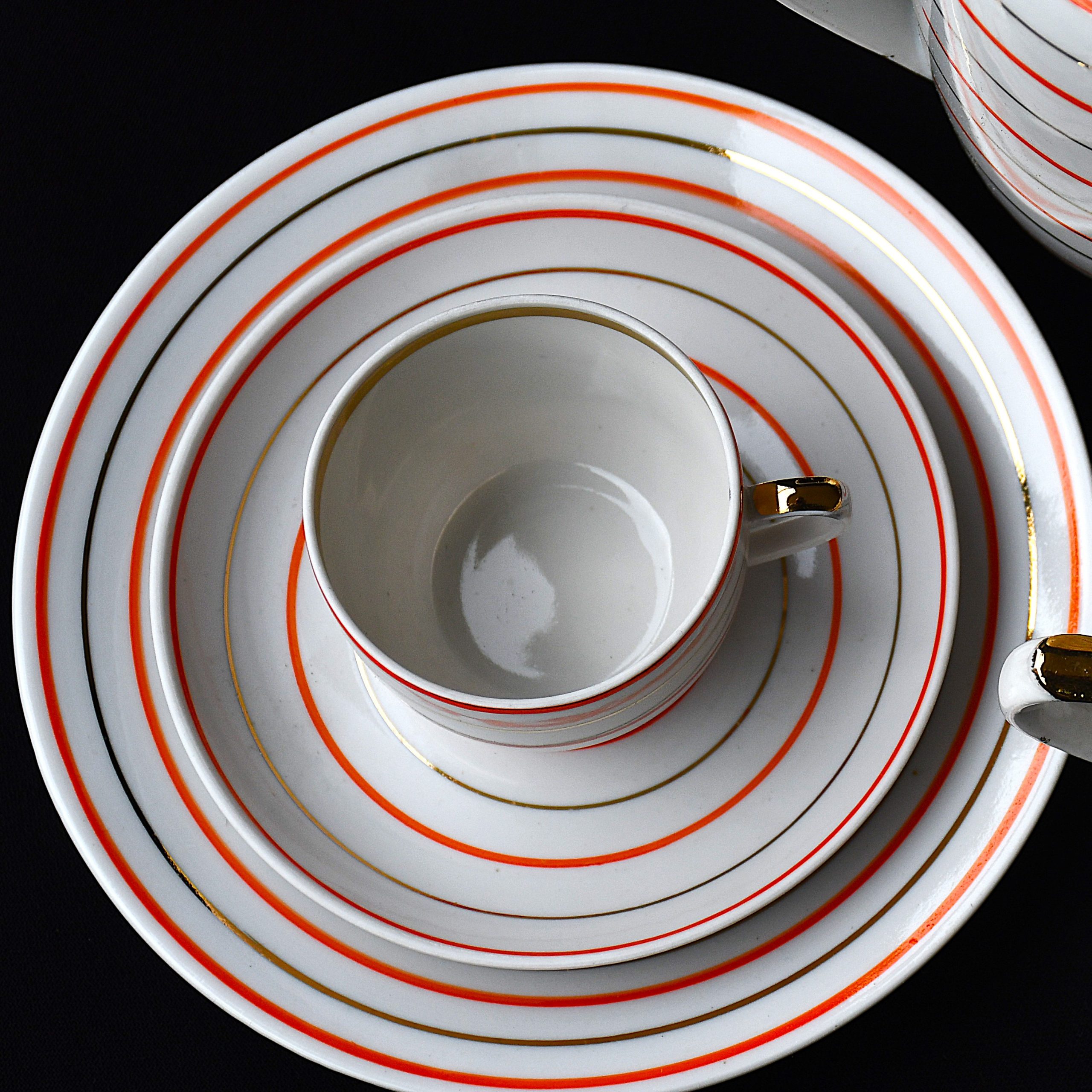 Непълен сервиз за кафе (17 части) на Дмитровския порцеланов завод в гр. Вербилки, Русия (бившия завод на Кузнецов). Модел: „Радиоволны“.