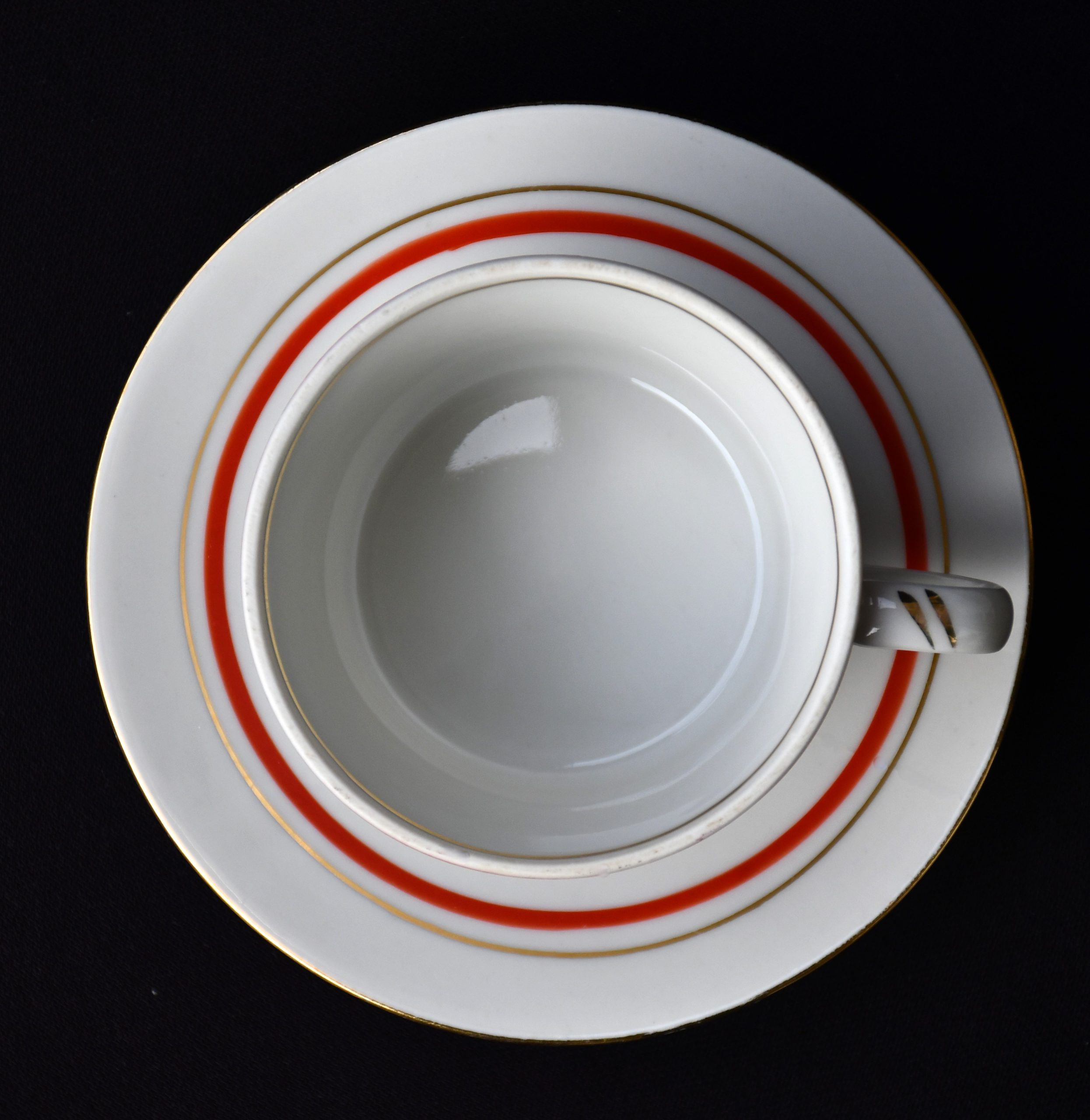 Датировка – втората половина на 70-те. Стилни, с елегантен оранжев кант и златни линии вътре и вън. Всичките маркирани с логото на производителя.