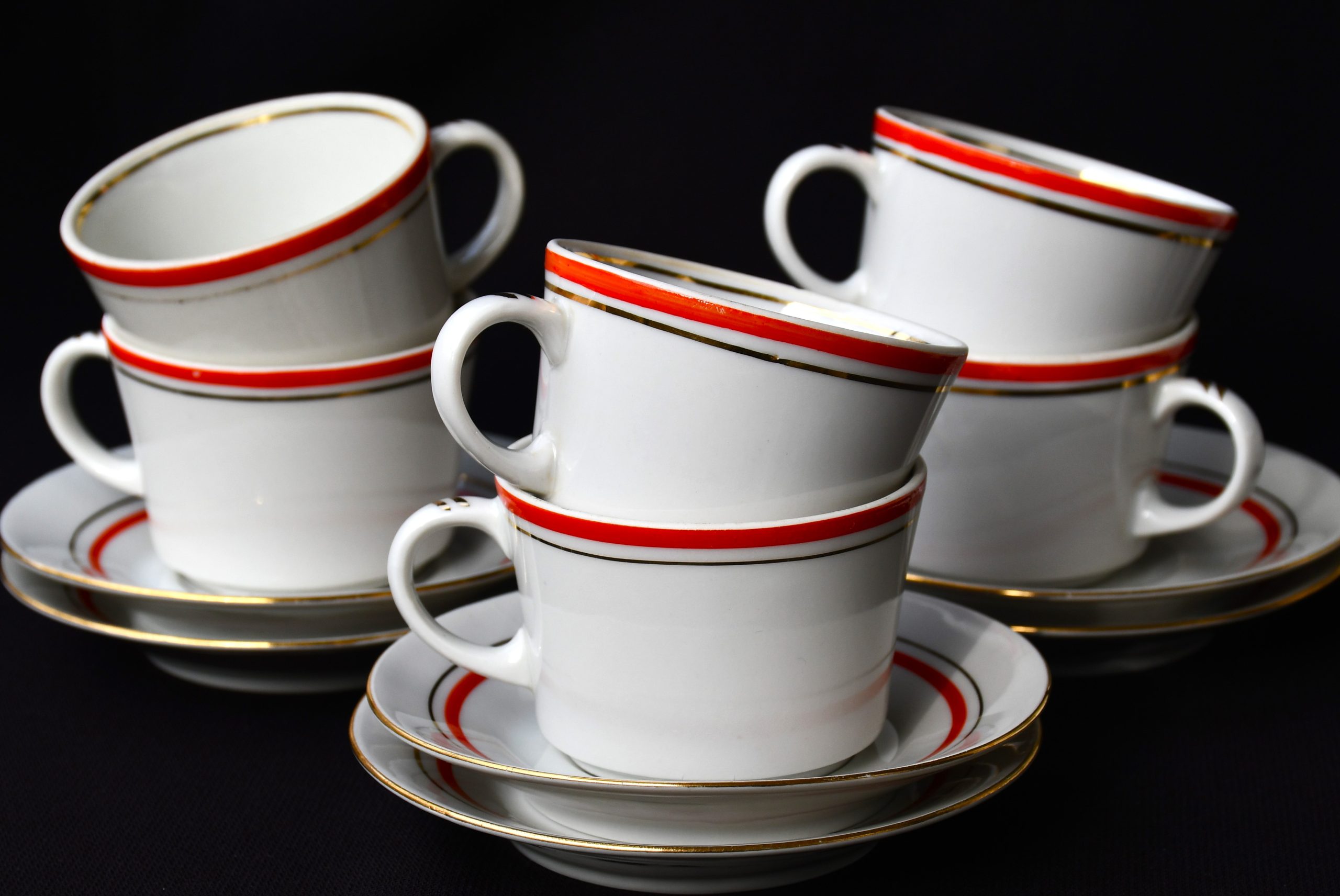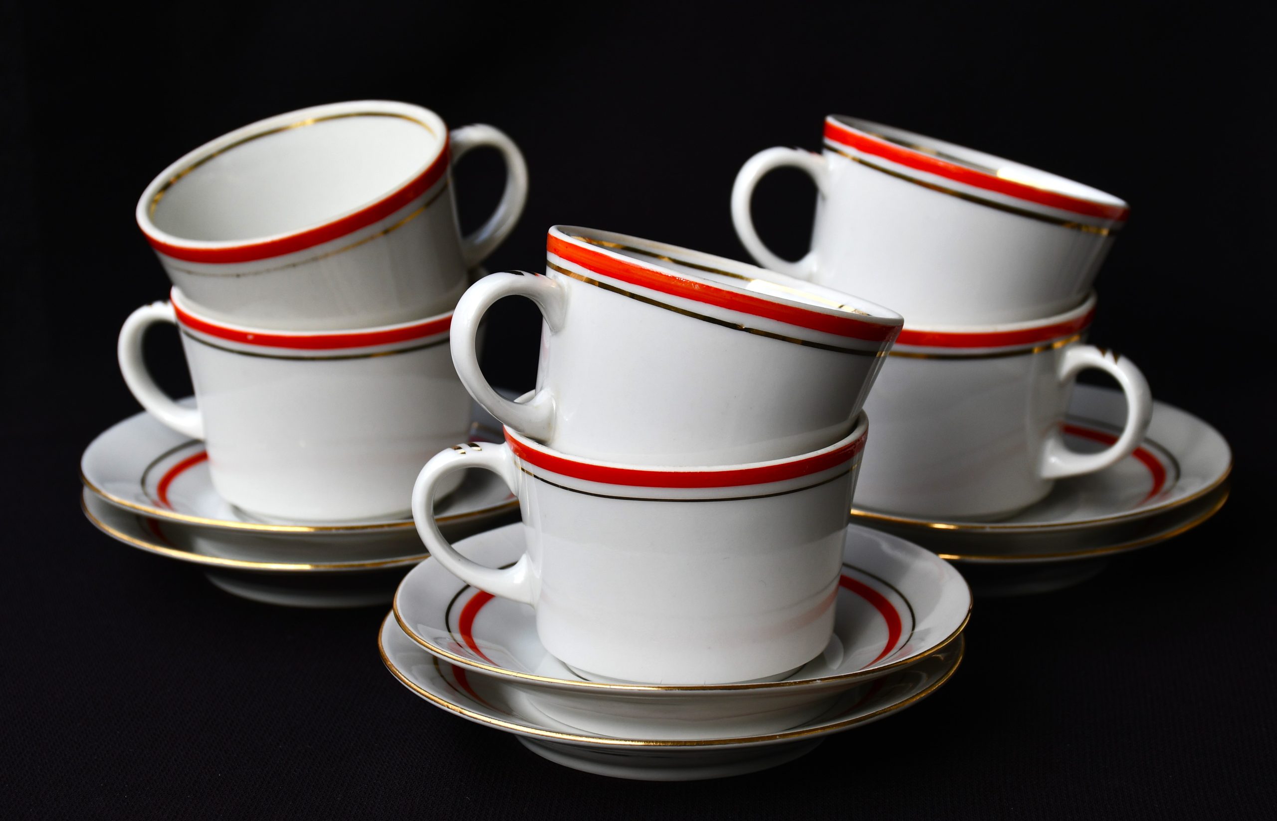 Отлично запазени, с малки следи от изминалото време. Общо в комплекта – 6 чашки, 6 чинийки.