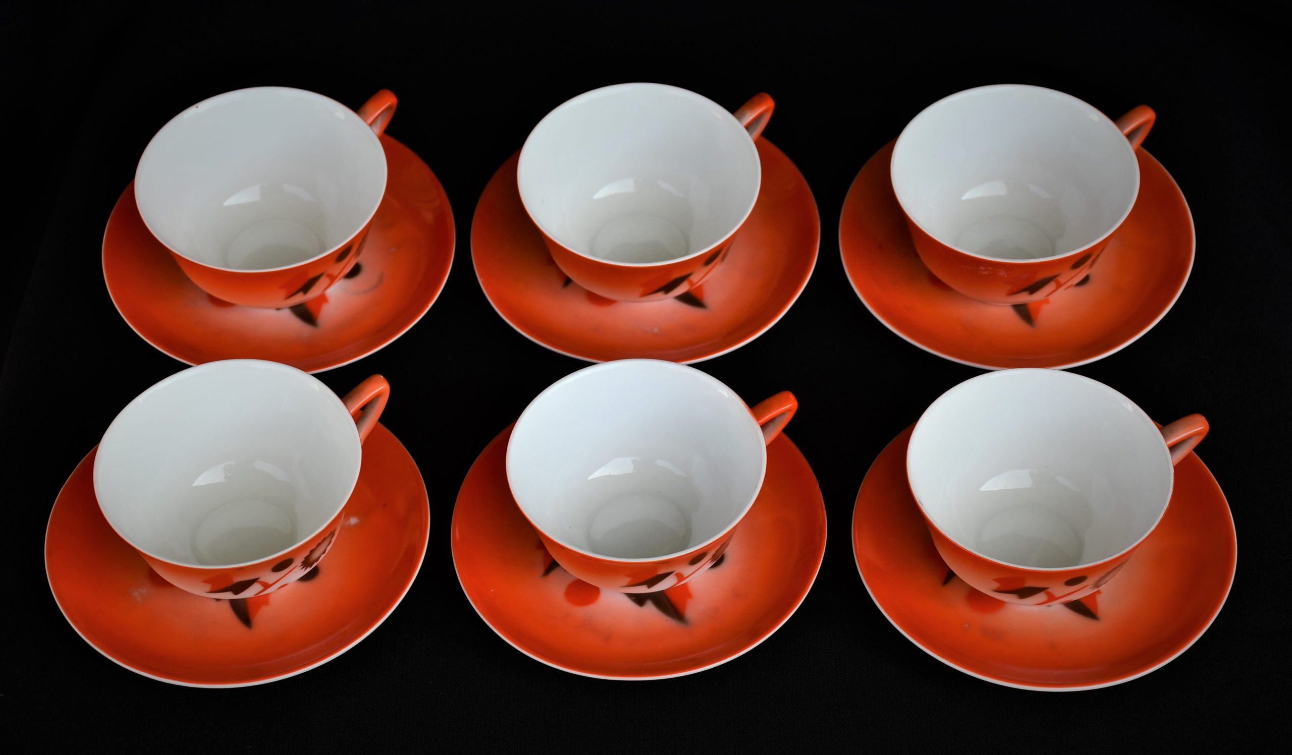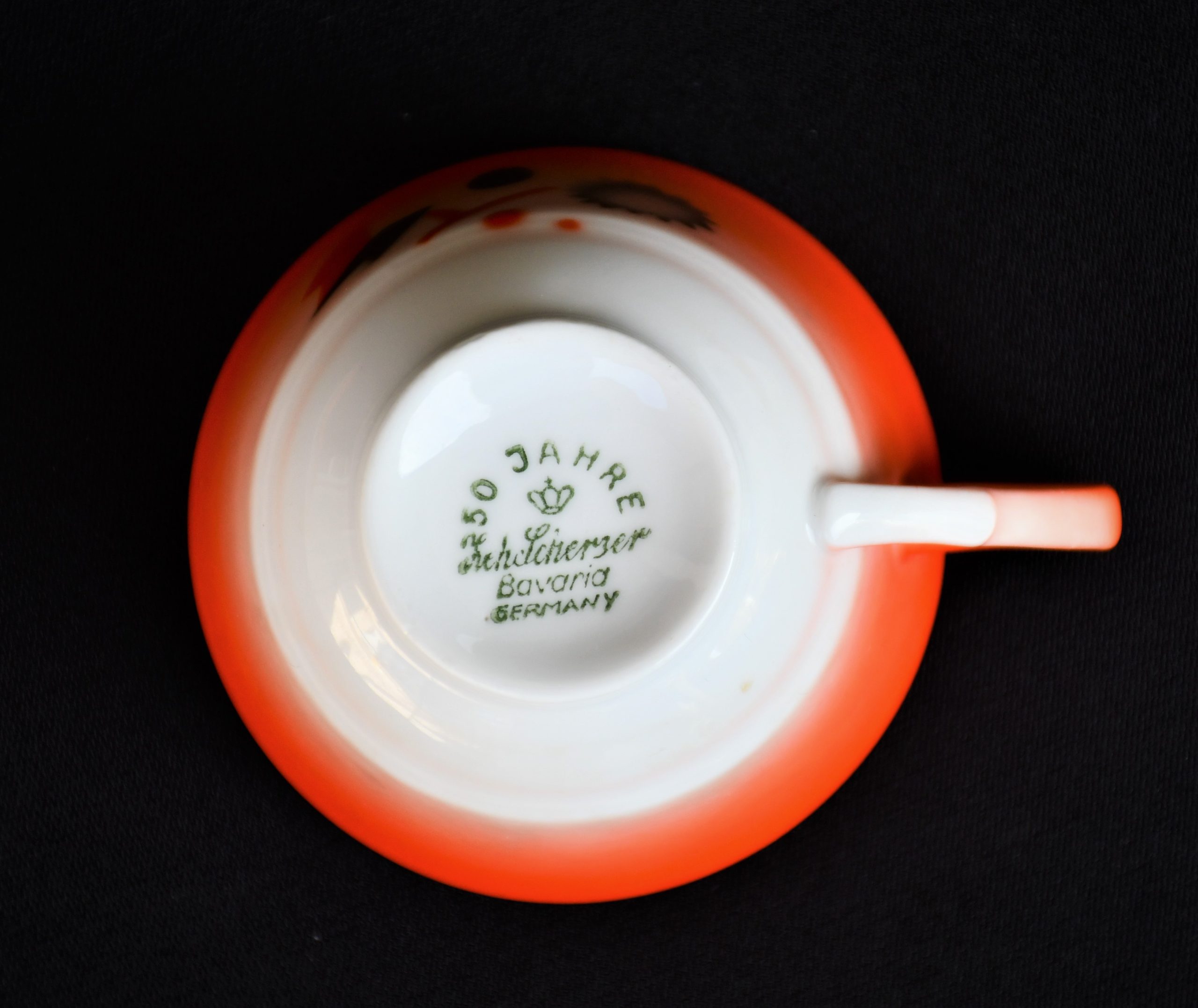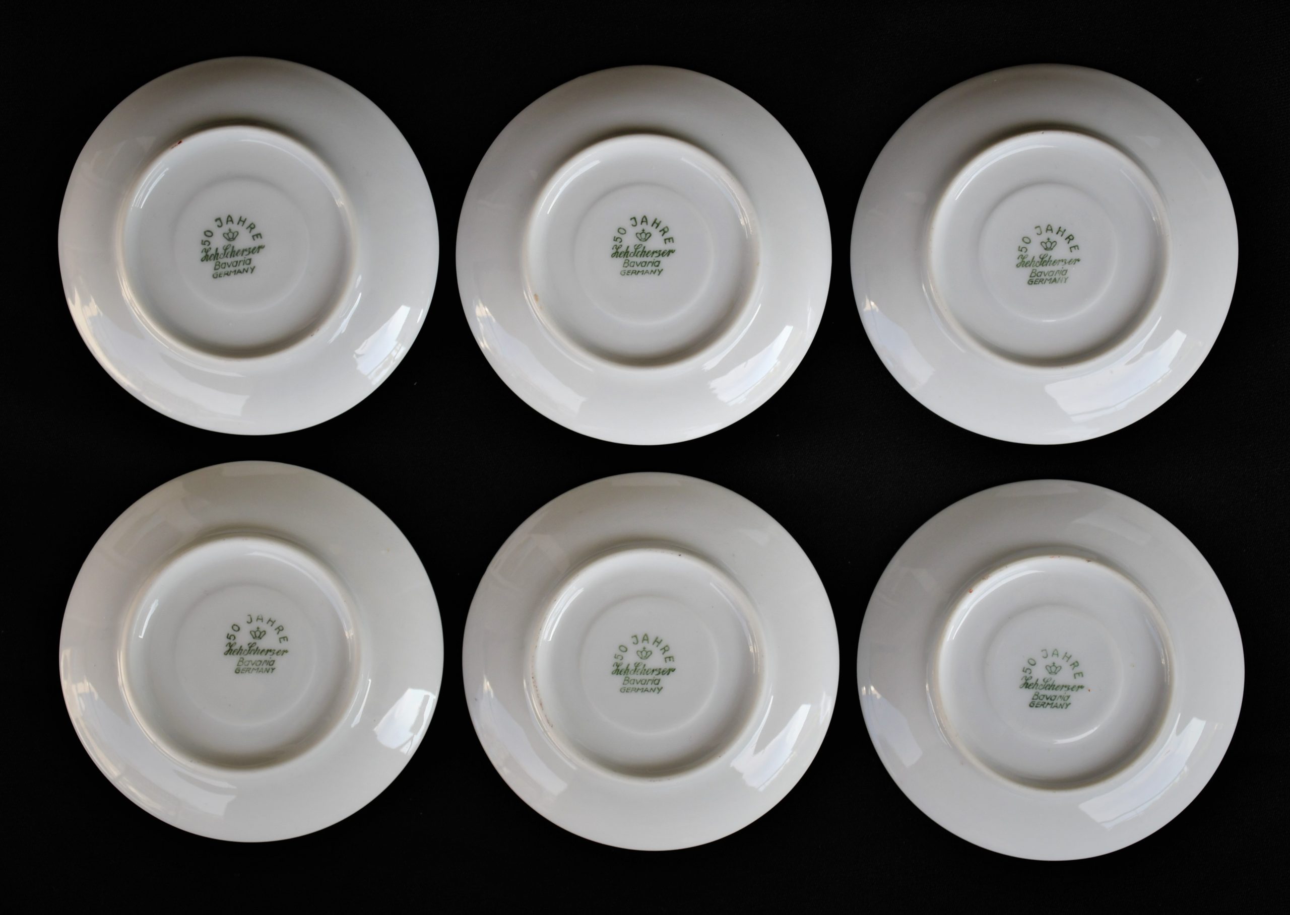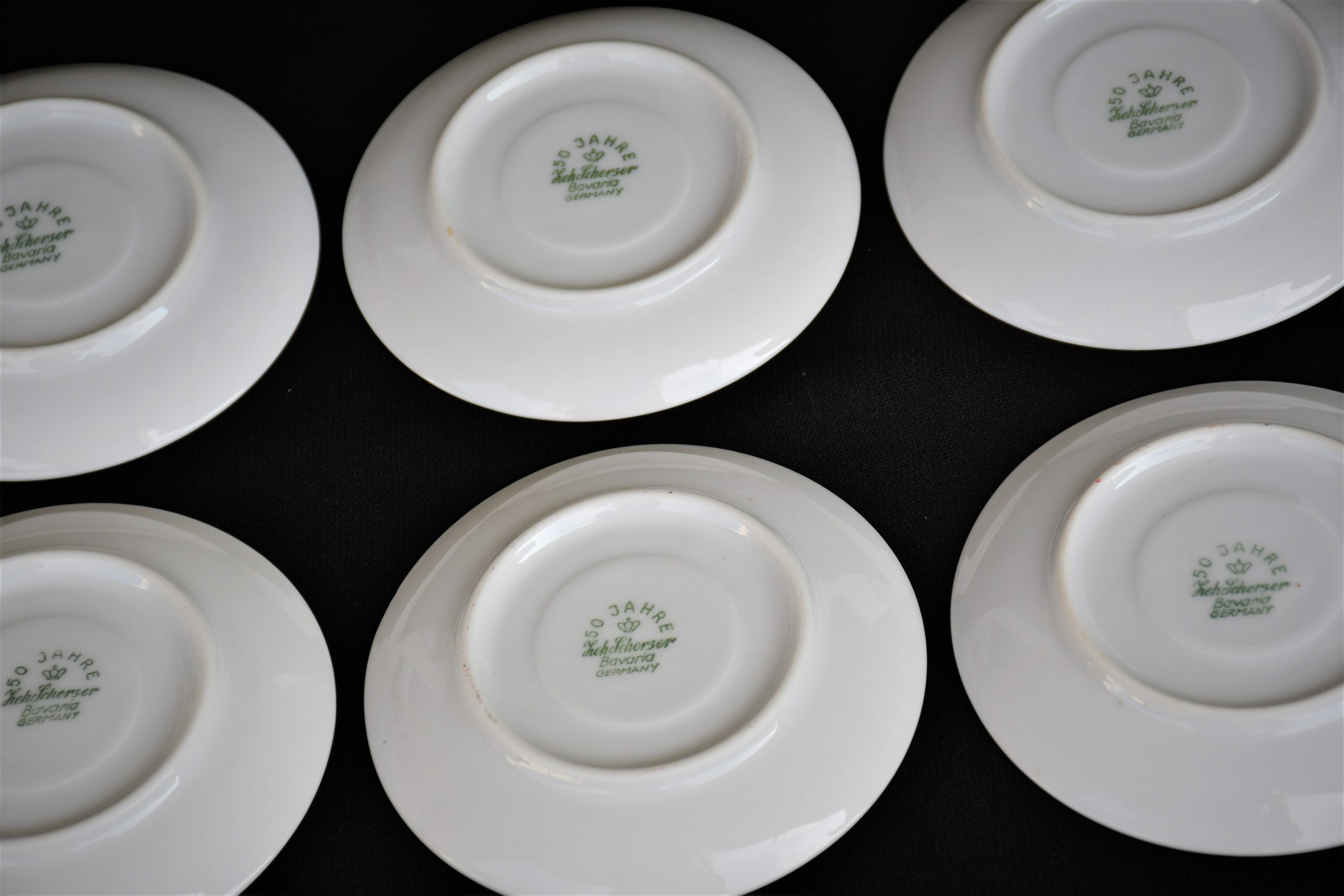 Прекрасен сервиз за кафе, произведен от реномираната компания Zeh Sherzer, Bavaria за техния полувековен юбилей през 1930. Състои се от 6 чашки и 6 чинийки в отлично винтидж качество. Рядко юбилейно издание.