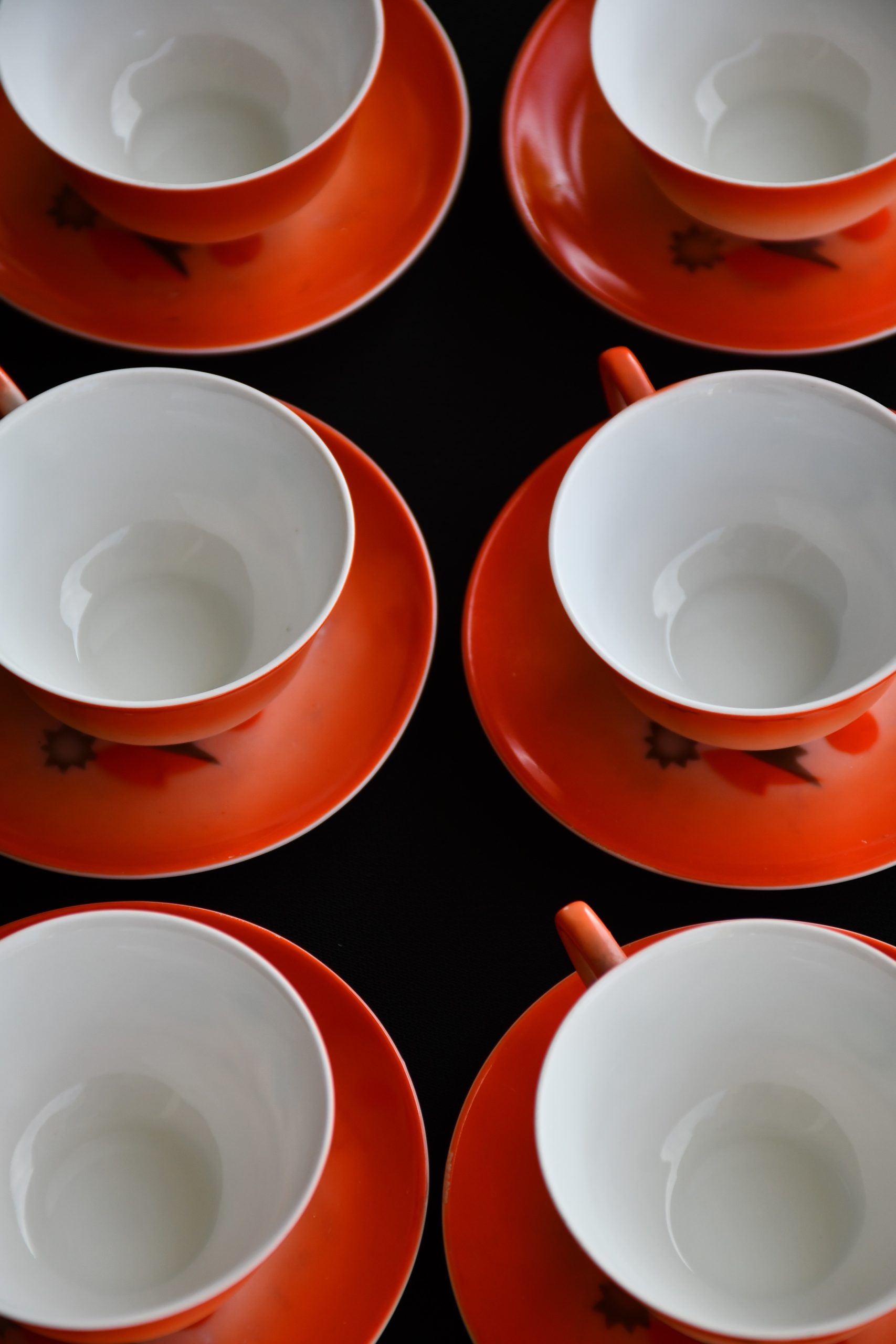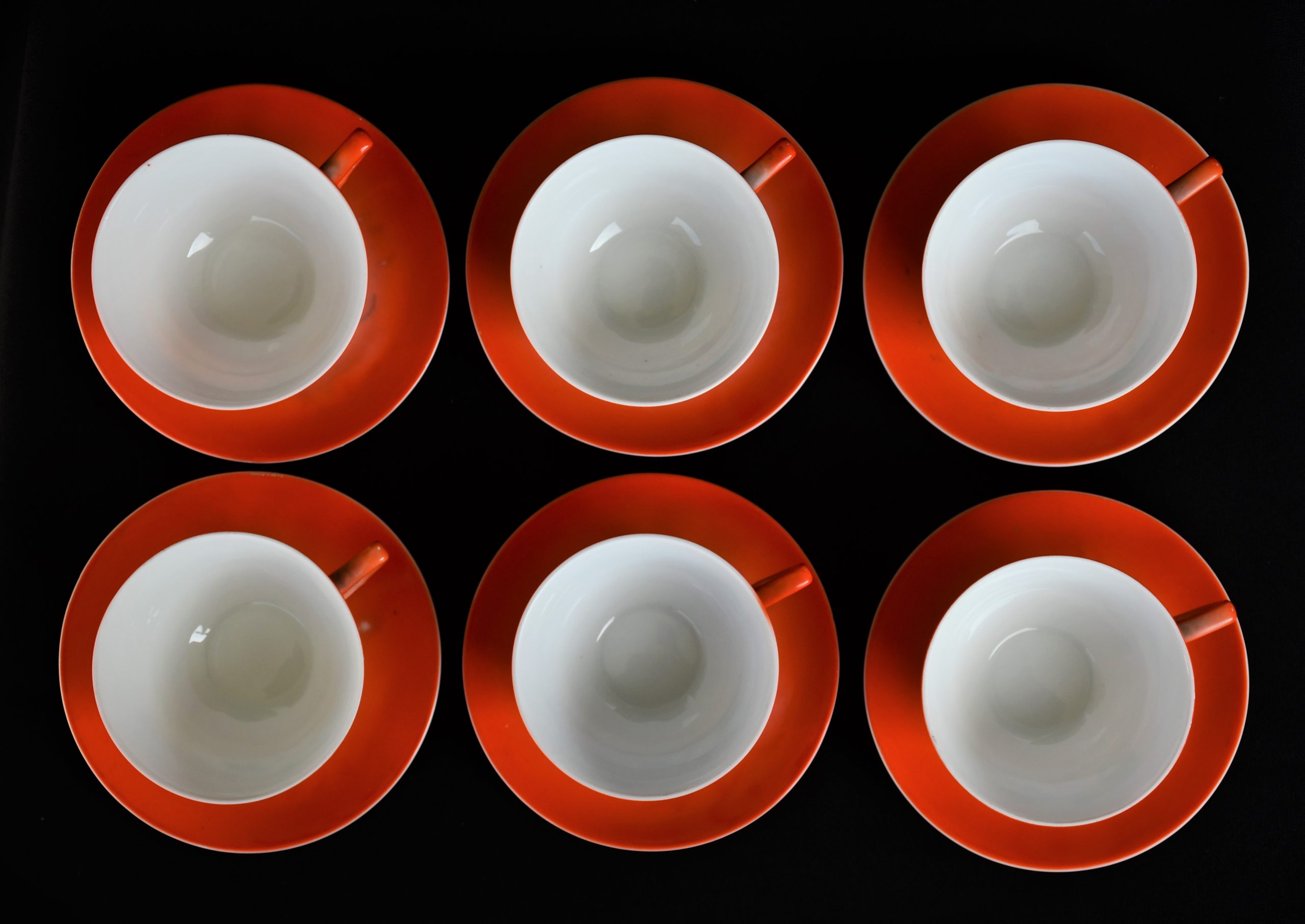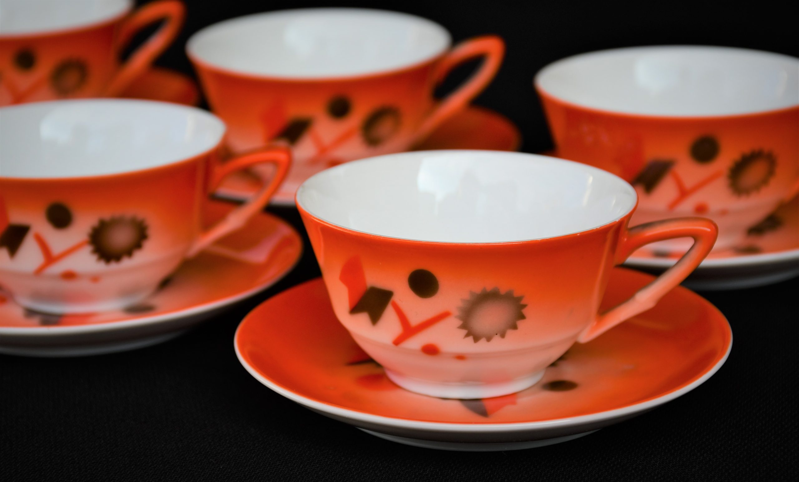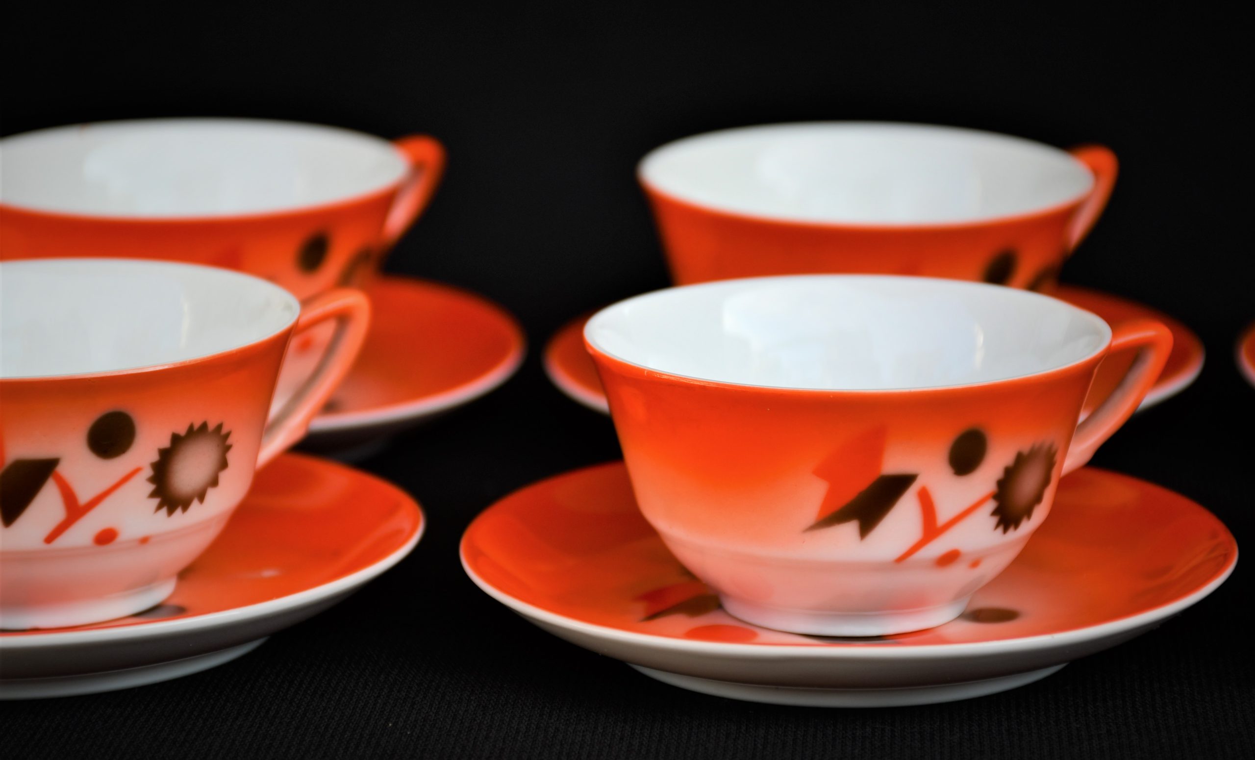 Прекрасен сервиз за кафе, произведен от реномираната компания Zeh Sherzer, Bavaria за техния полувековен юбилей през 1930. Състои се от 6 чашки и 6 чинийки в отлично винтидж качество. Рядко юбилейно издание.