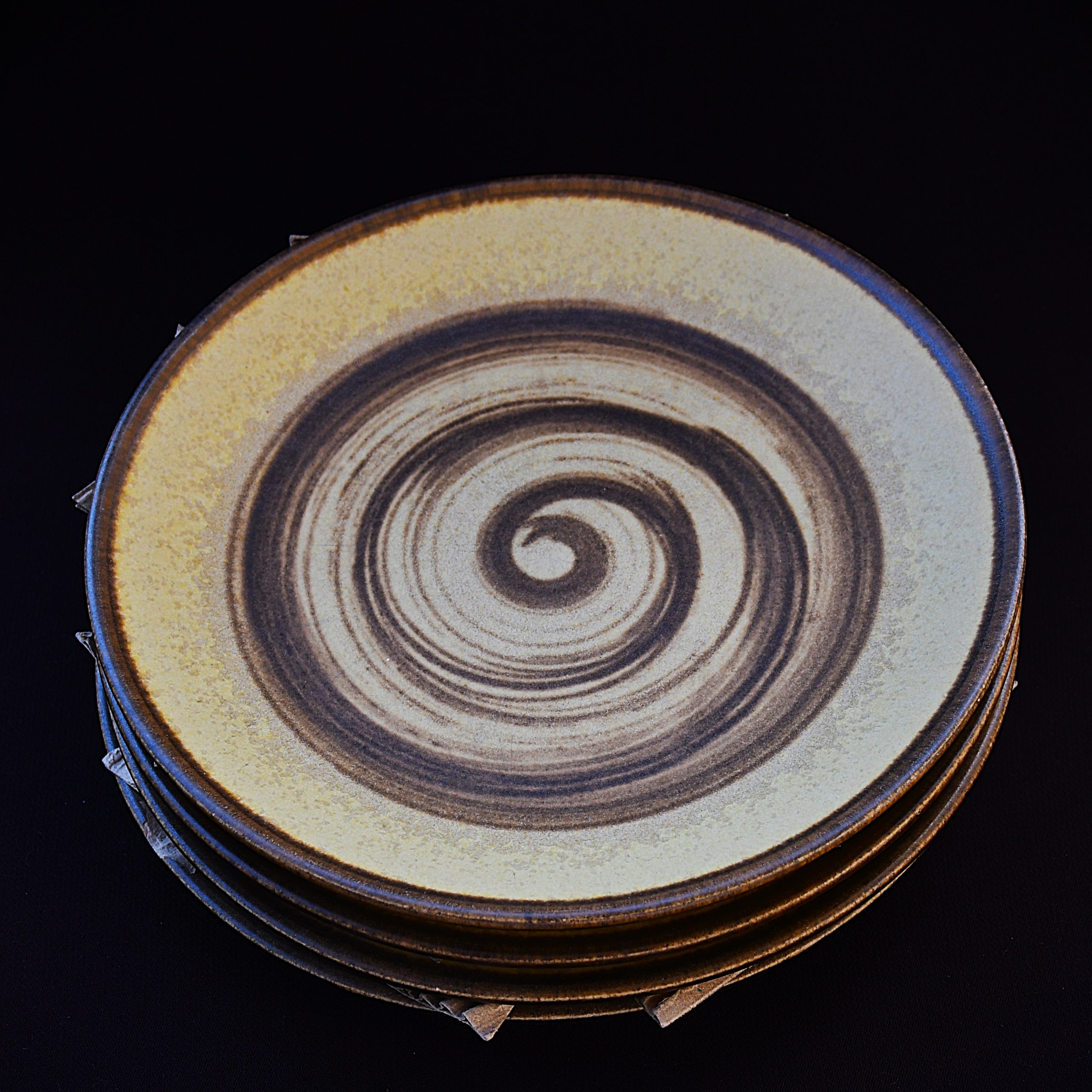 Сет от 4 прекрасни чинии, stoneware, винтидж, произведени от Tokio Design Studio (TDS) – Япония през 1990-те г. Модел Asashio със спираловидни декорации в стил модерн.
