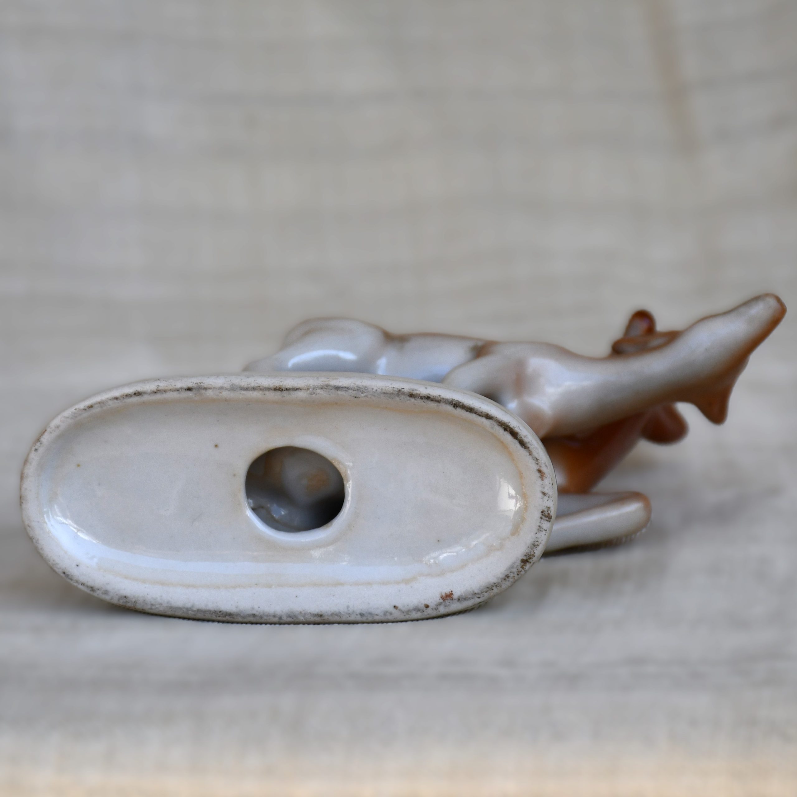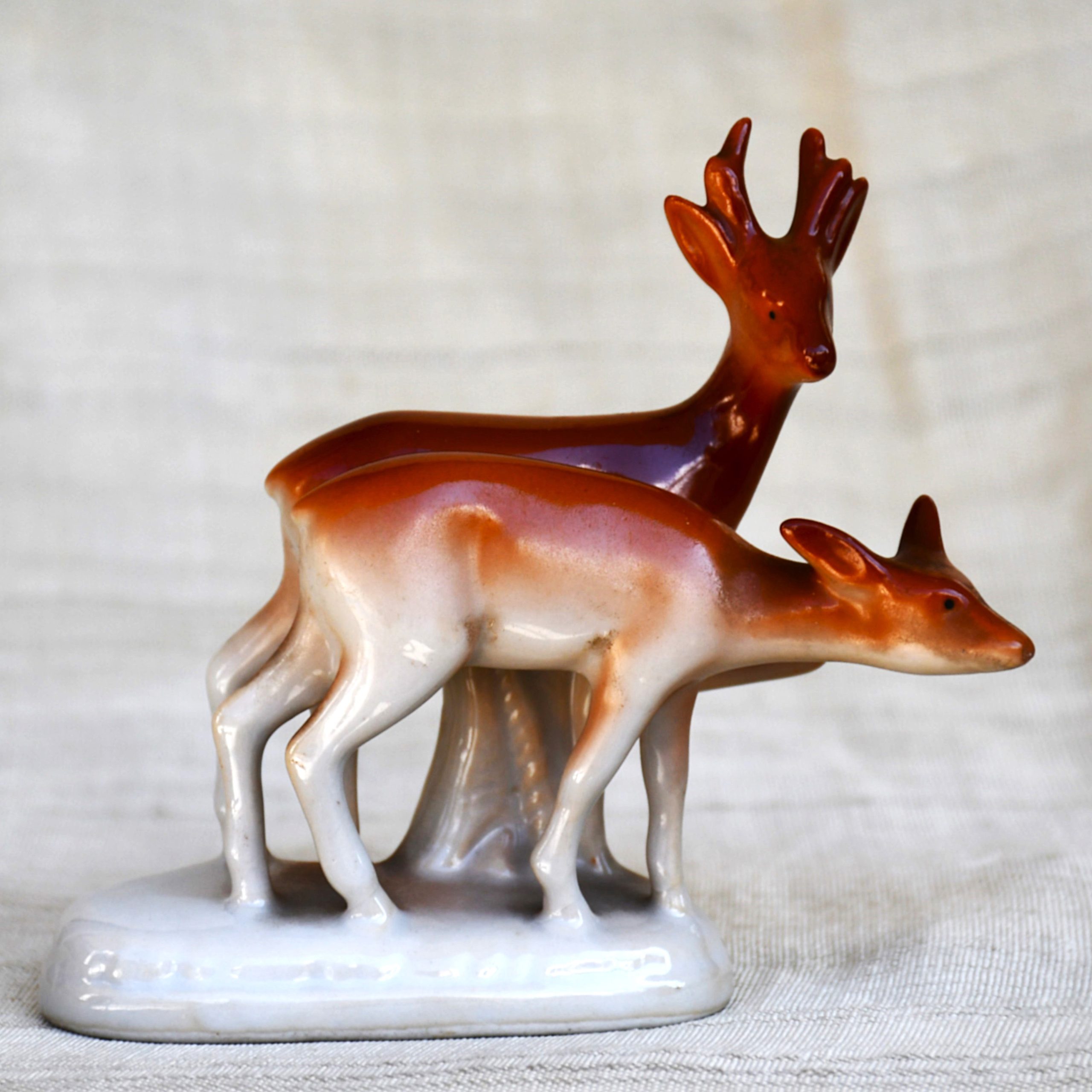 Качеството е отлично винтидж. Малка „невидима“ пукнатина в опората под корема на мъжкия. Забележима само с лупа и не влияе върху цялостното представяне.