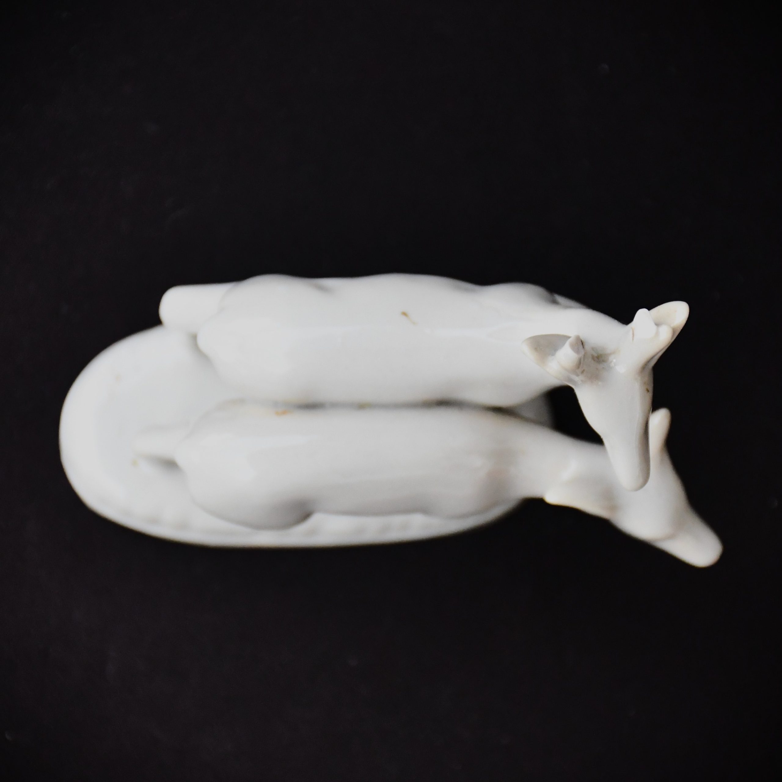Качеството е добро винтидж. Микрочипове – на долния ръб на вазата и на върха на единия от рогата на мъжкия. Трудно забележими и не влияят върху цялостното представяне.