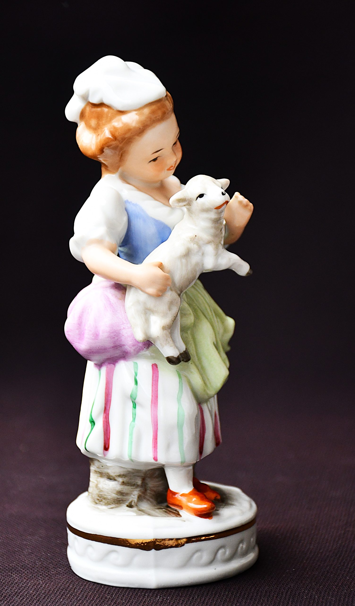 Прелестна порцеланова фигура на момиче с агне – добър размер. Изключително декоративна. Маркирана Capodimonte с неаполитанско синьо на дъното.