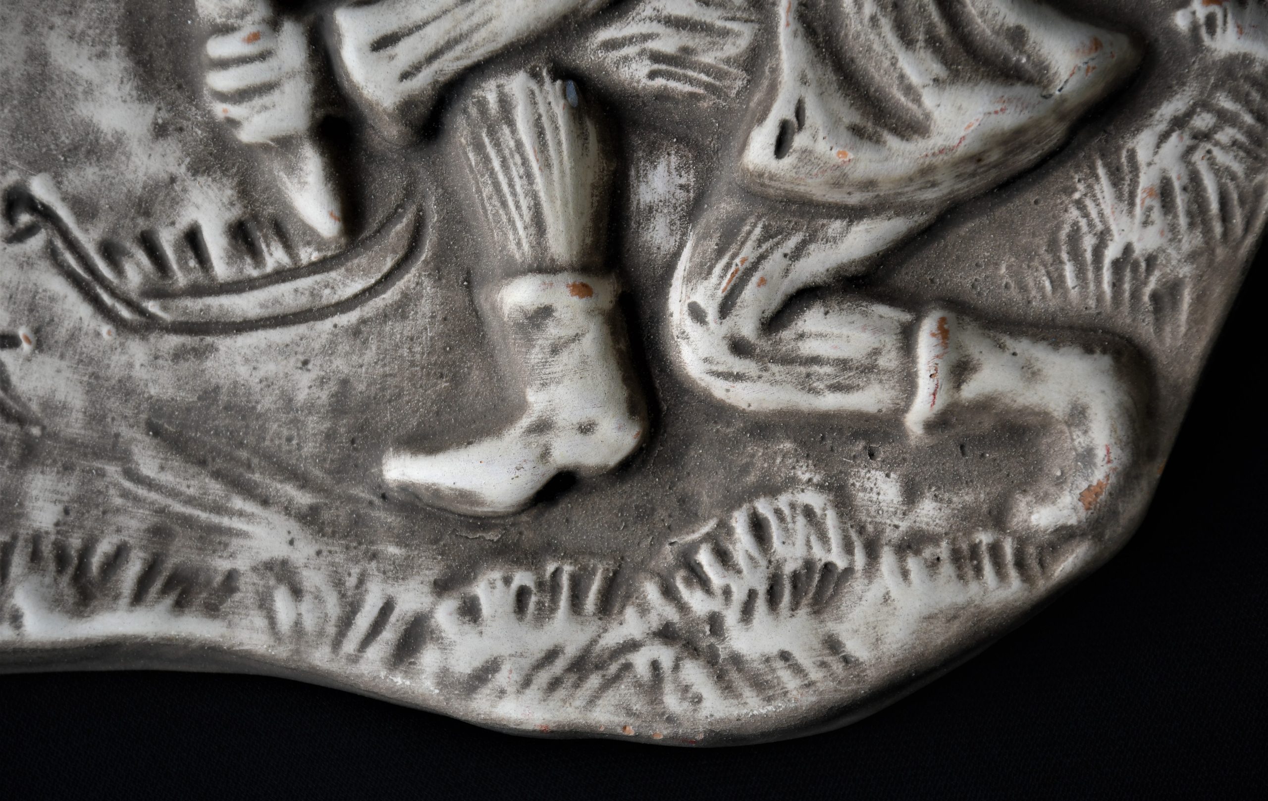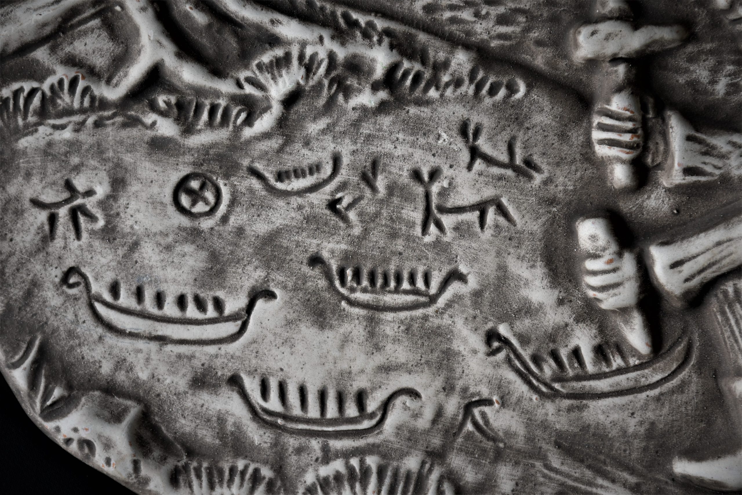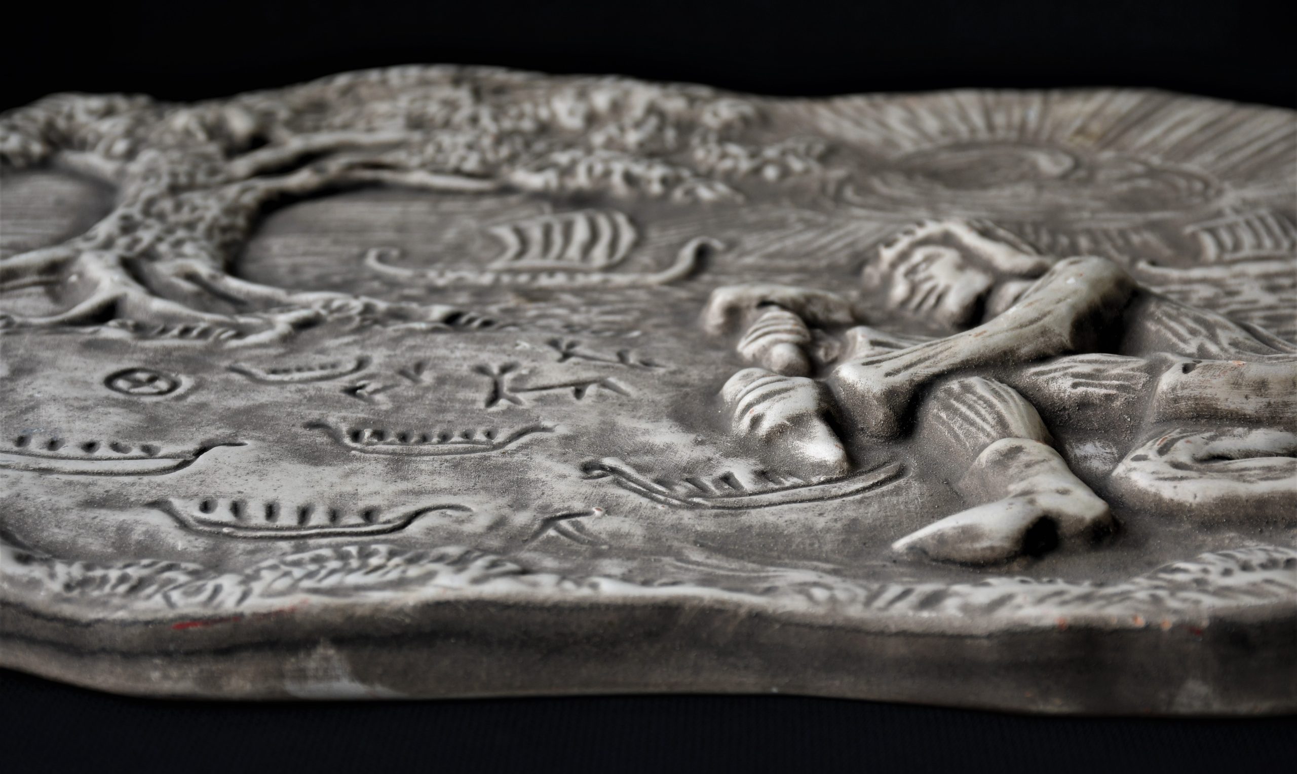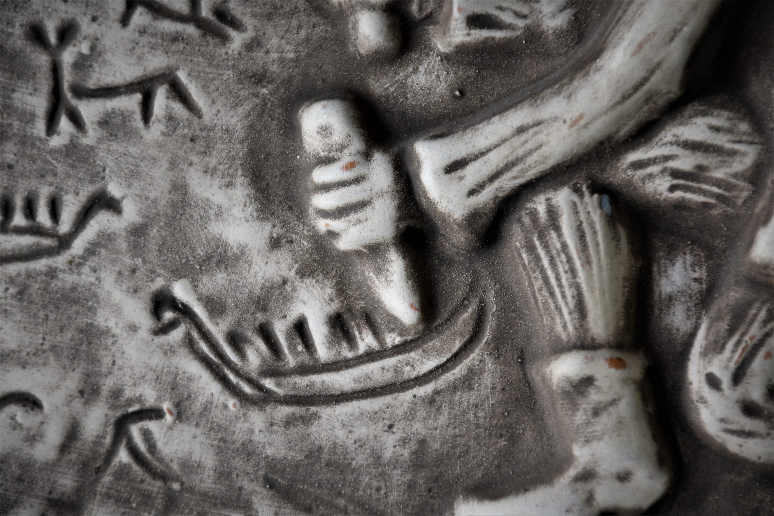 Стенна скулптура, „Викинг“, създадена през 1950те. Ръчна работа от компанията „Spektro“, Skiptvet, Норвегия. Тази фирма не съществува вече 40+ години.