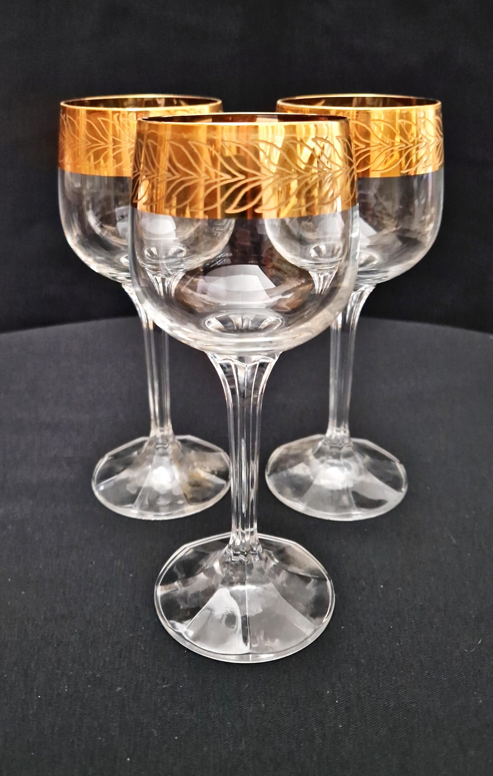 Стъклени чаши за вино със златен кант – на брой