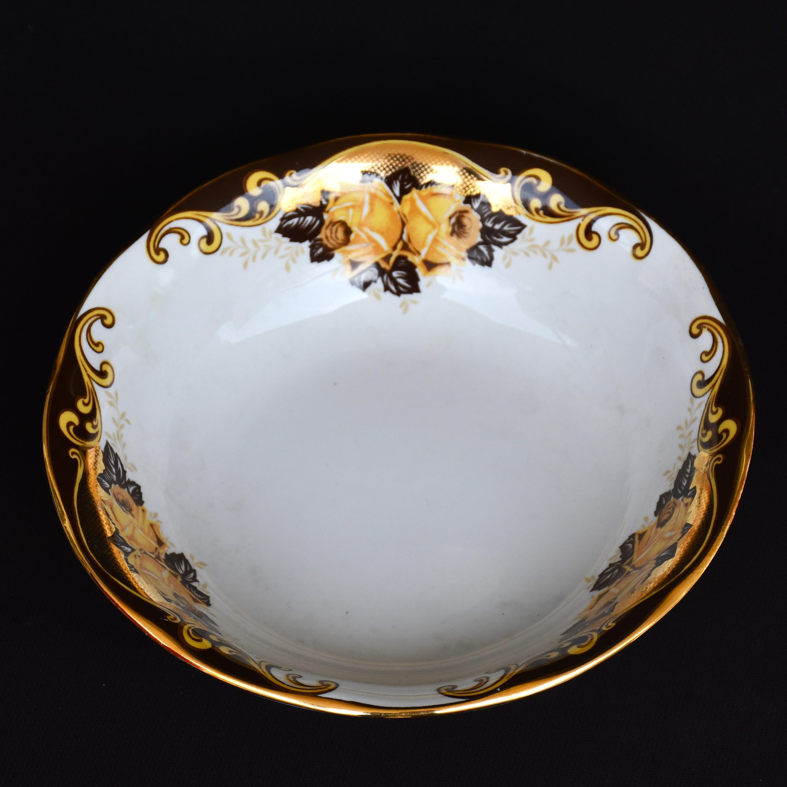Датировка: 1970-те, СССР. Материал: порцелан. Богата флорална декорация в духа на Midcentury modern. Златото не е пестено.