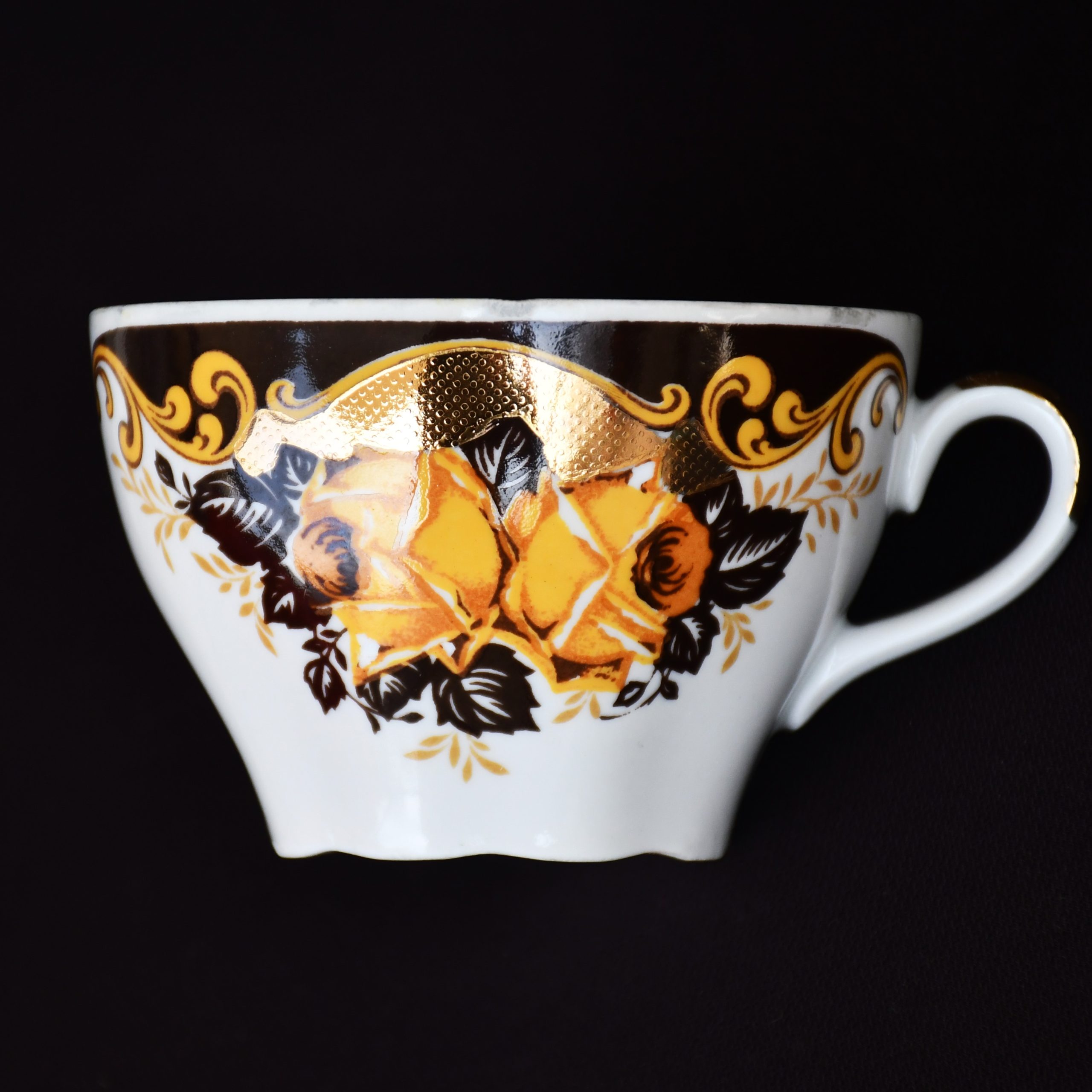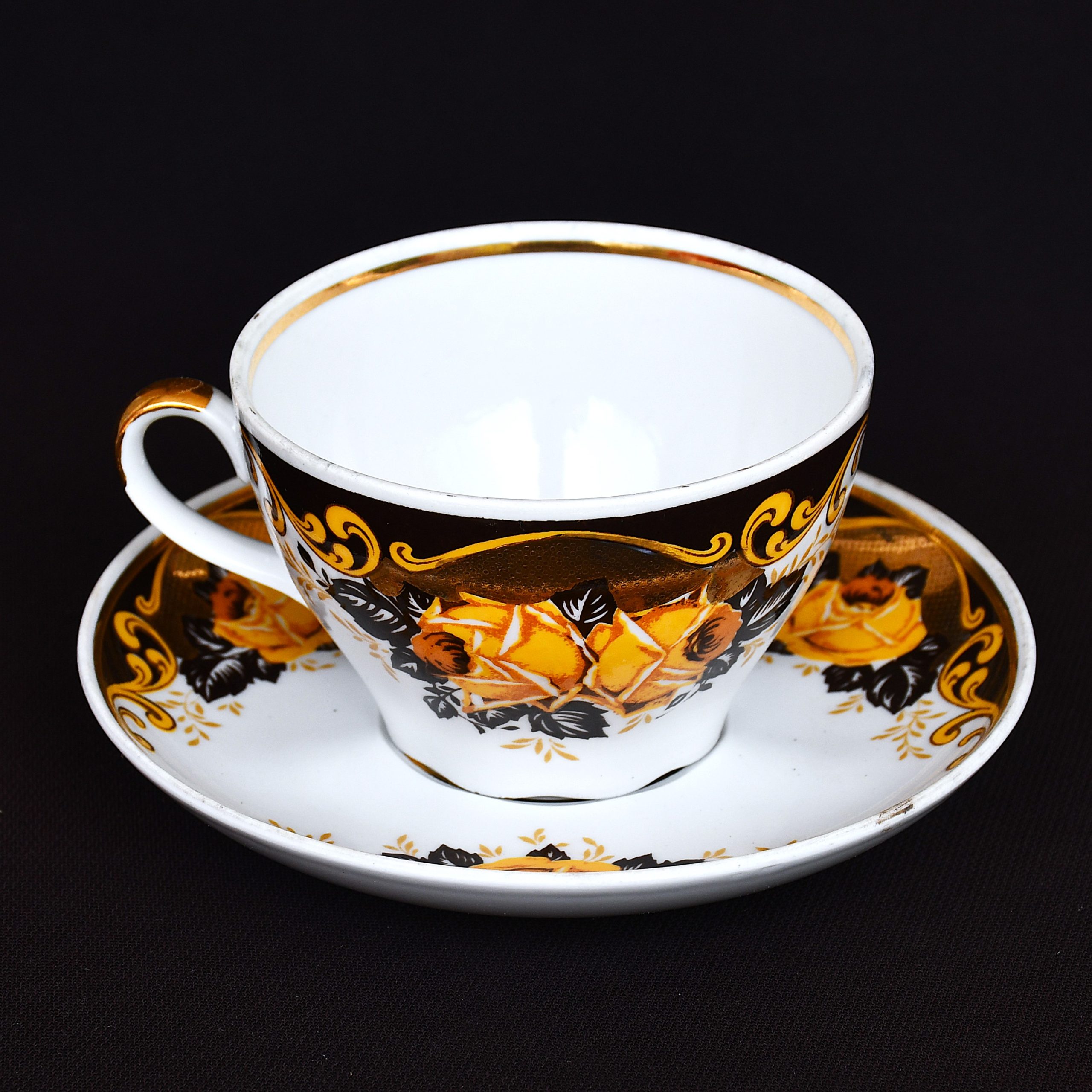 Оригинален винтидж сервиз за чай/кафе от съветската ера. Модел „Жёлтая роза“. Рядък и колекционен.
