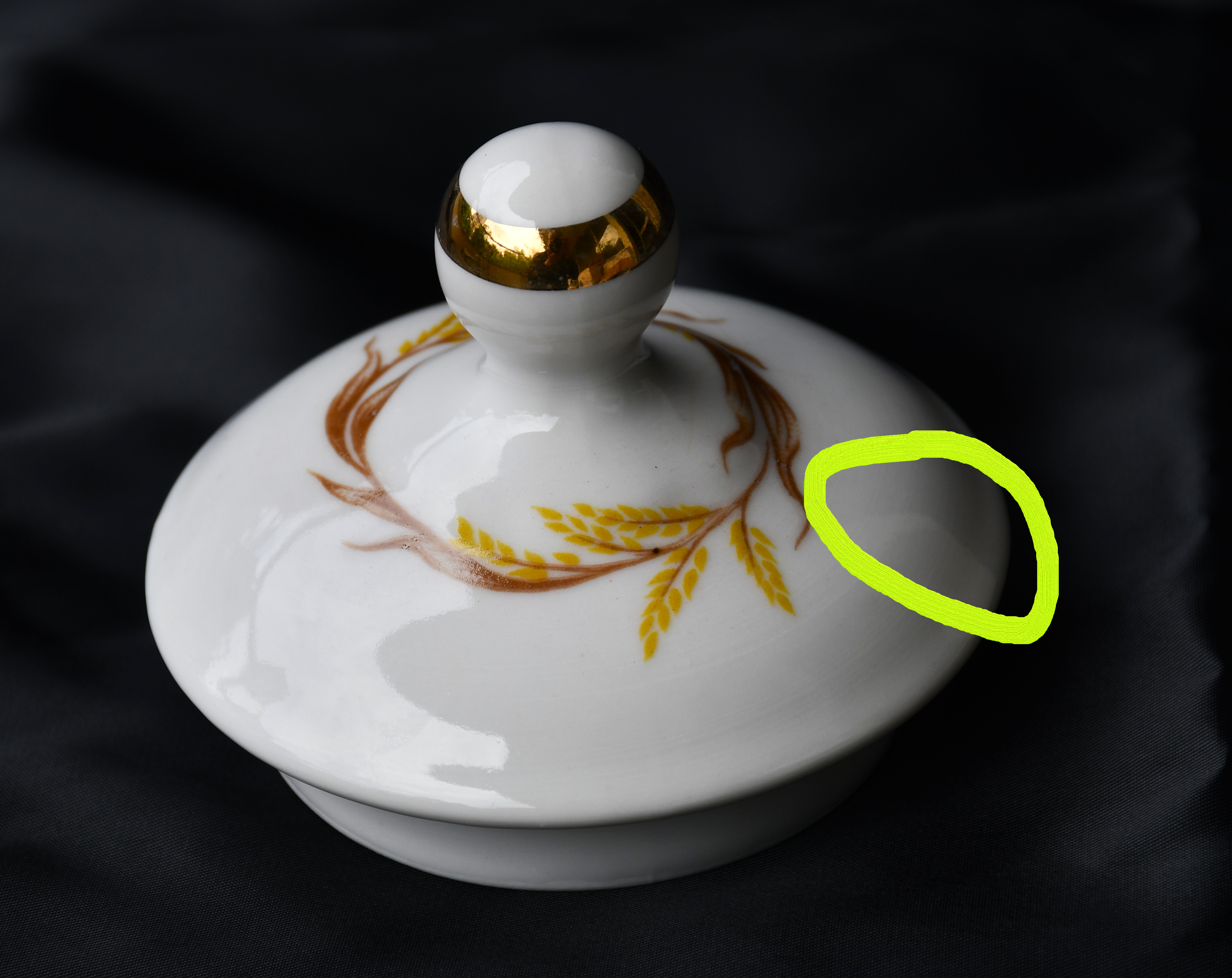 В много добро употребявано винтидж състояние с малки следи от изминалото време. Много тънка, почти невидима пукнатина в периферията на капака. Трудно забележима. С усилен контраст и маркирана в близкия план.