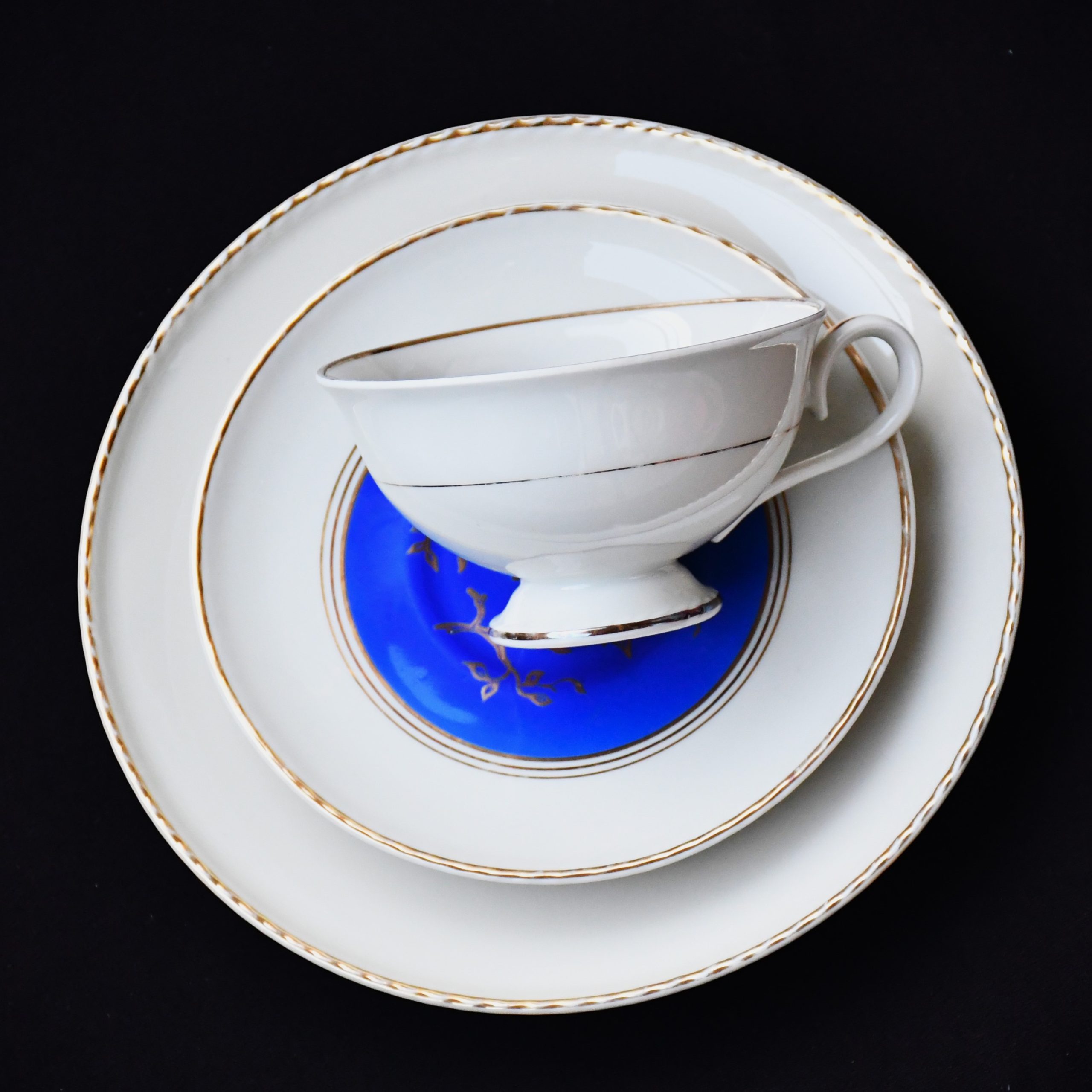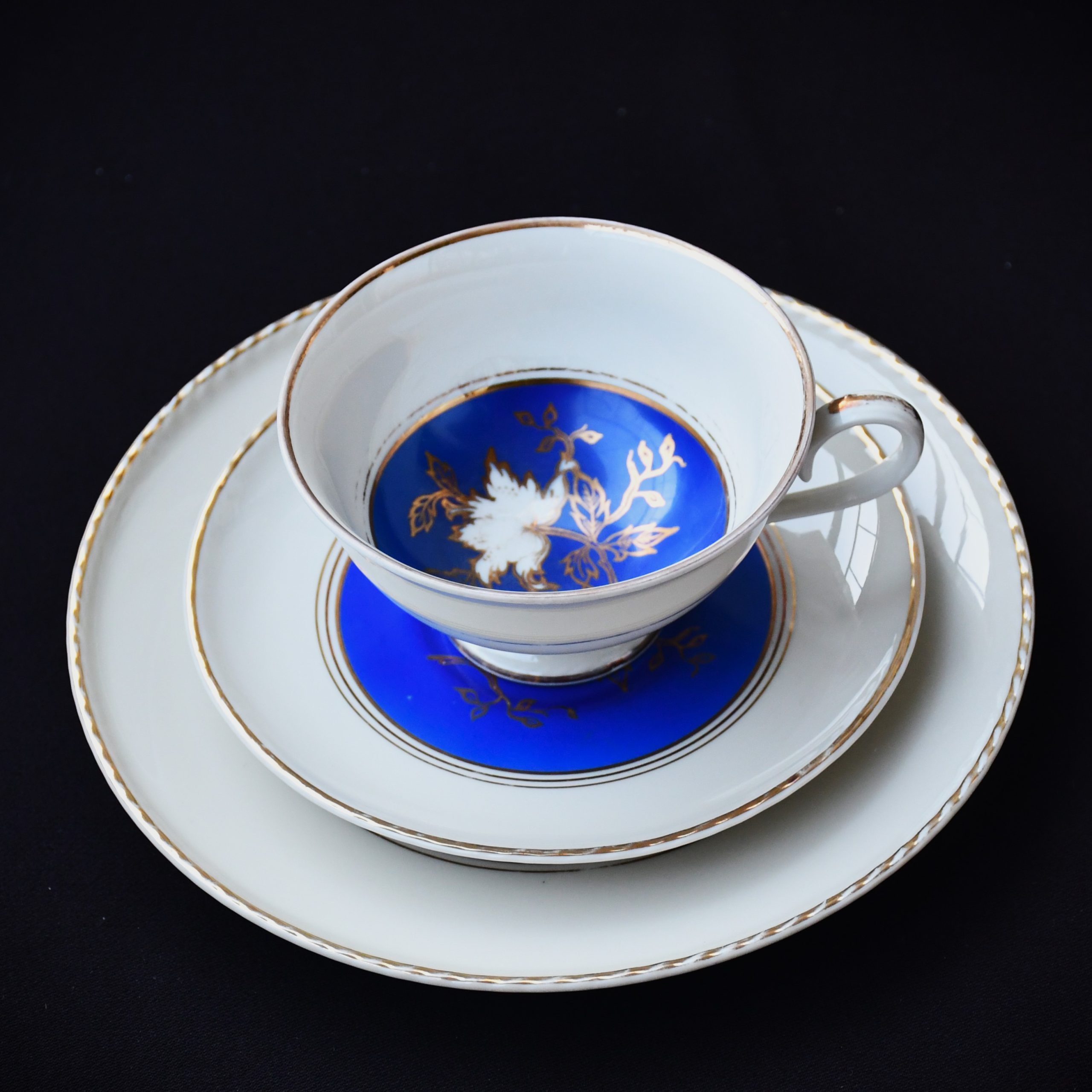 Троен сет за чай/какао на Röslau, Bavaria. Чаша, подложна чинийка и чиния за десерт.