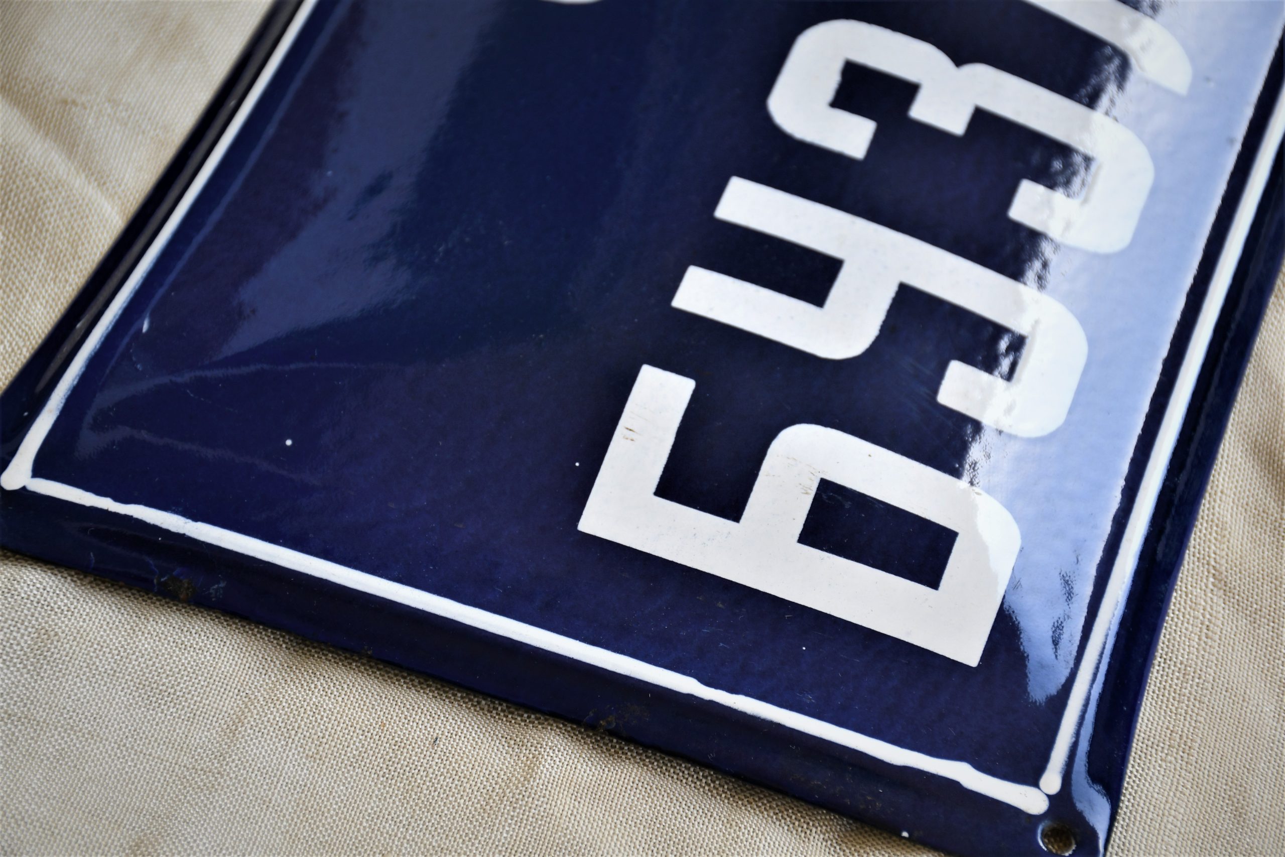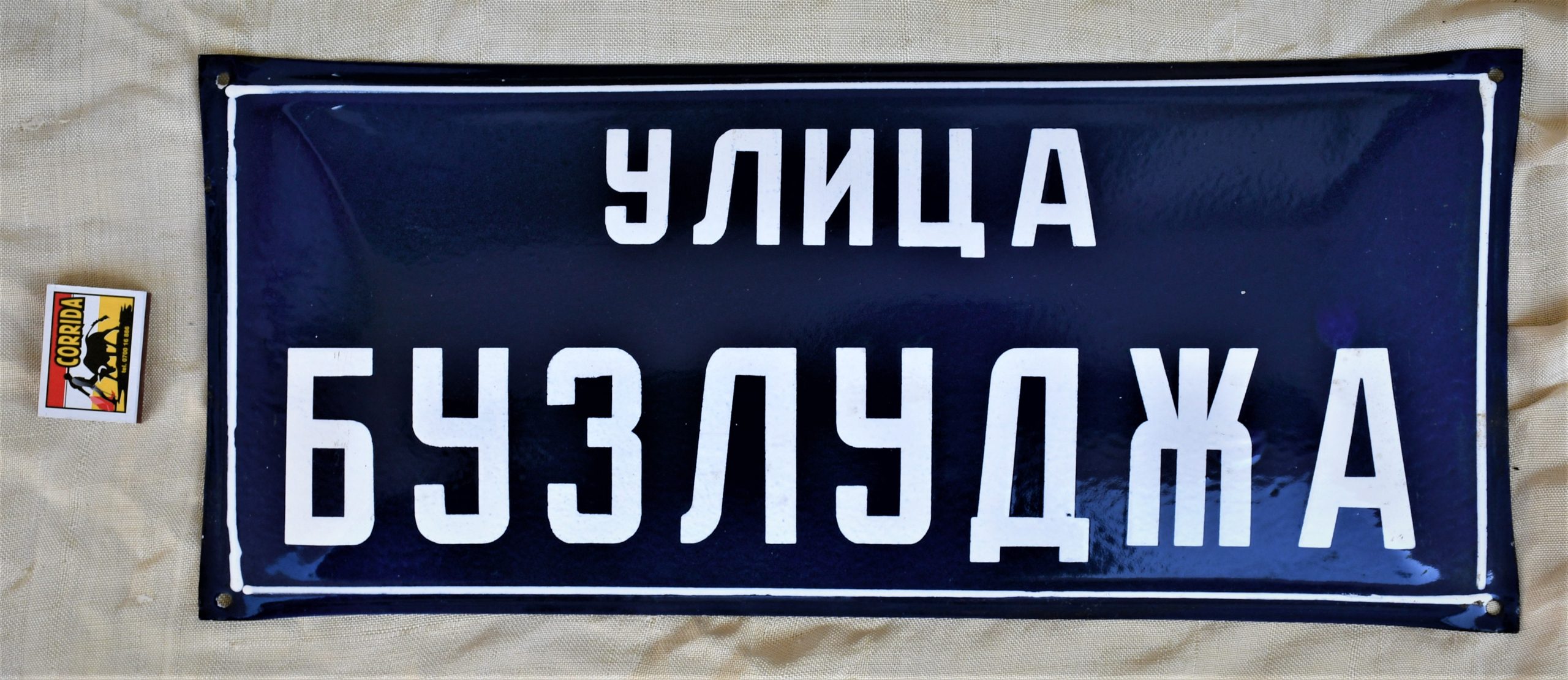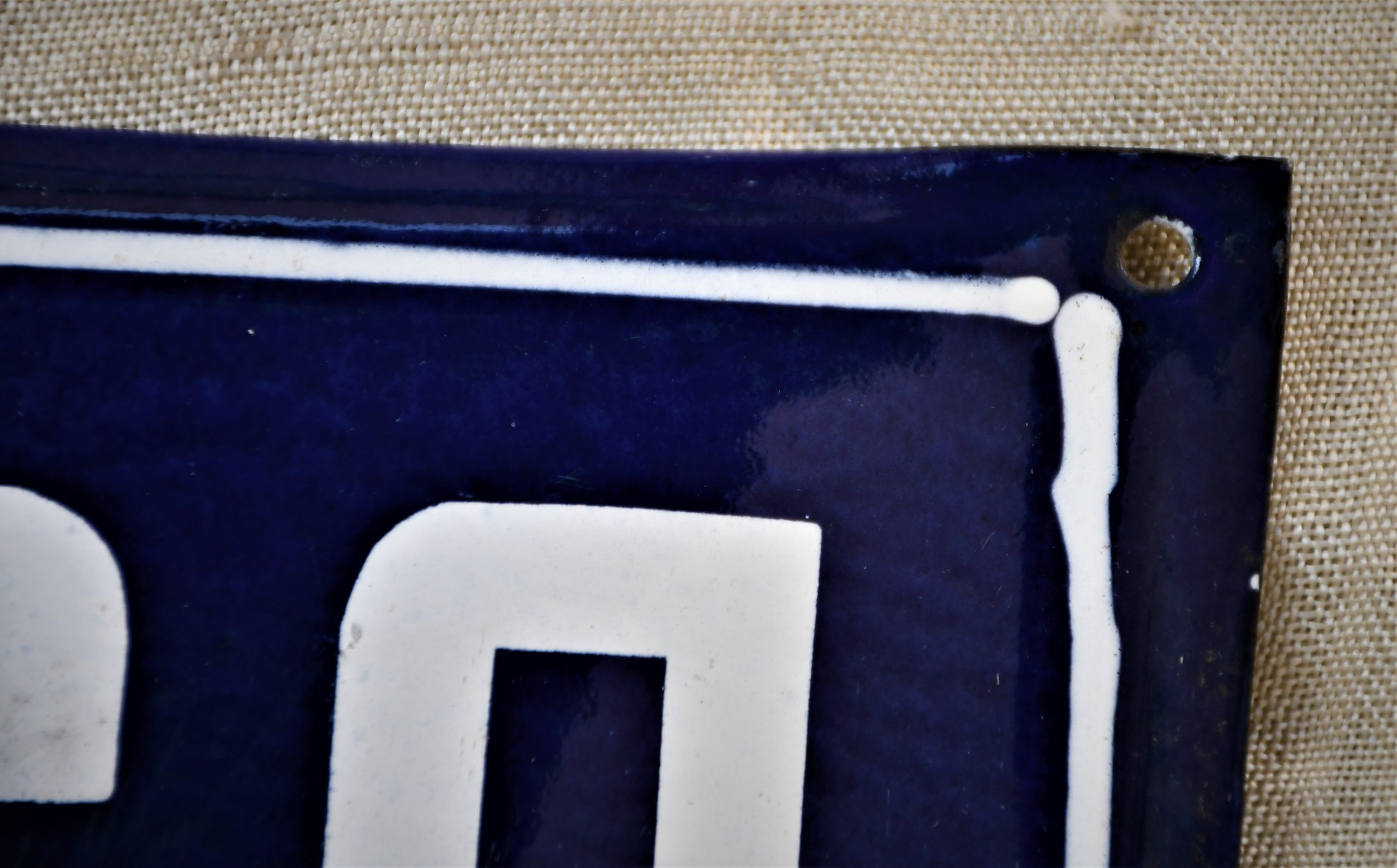 Рядка находка, особено в това превъзходно състояние. Направена от здрава стомана, цветовете са свежи, цялата табела е изпъкнала, емайлираните букви са в 3Д. Всички отвори за закрепване са на местата си.