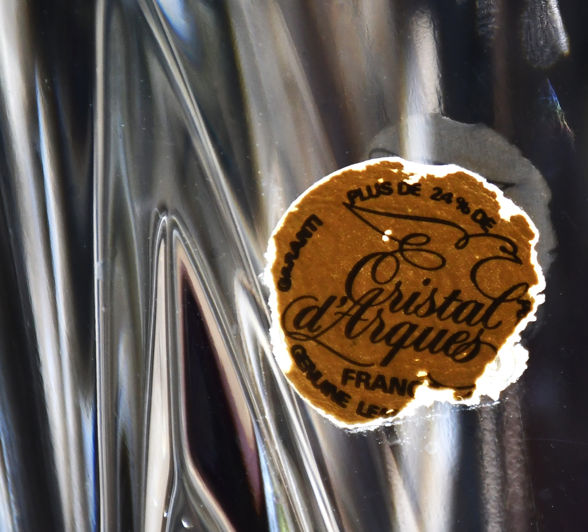 Стилна кристална ваза, датирана 70’те. Производство на знаменитата френска кристалерия Cristal d’Arques. Дизайнер – неизвестен. Не е подписана, както повечето неща от периода. Оригиналният етикет е наличен.