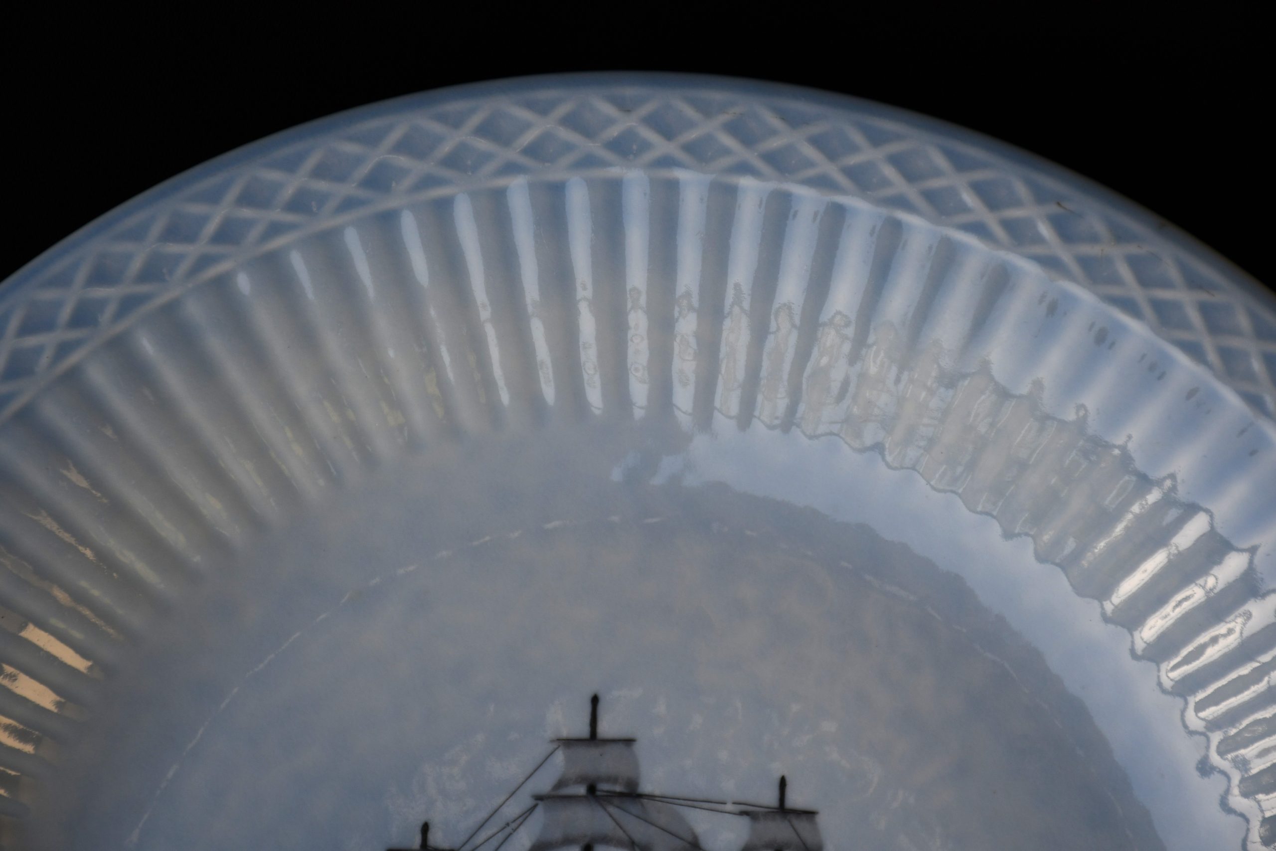 Голяма и впечатляваща винтидж чиния, декорирана с шведски боен кораб от 1800 г. Колекционна.