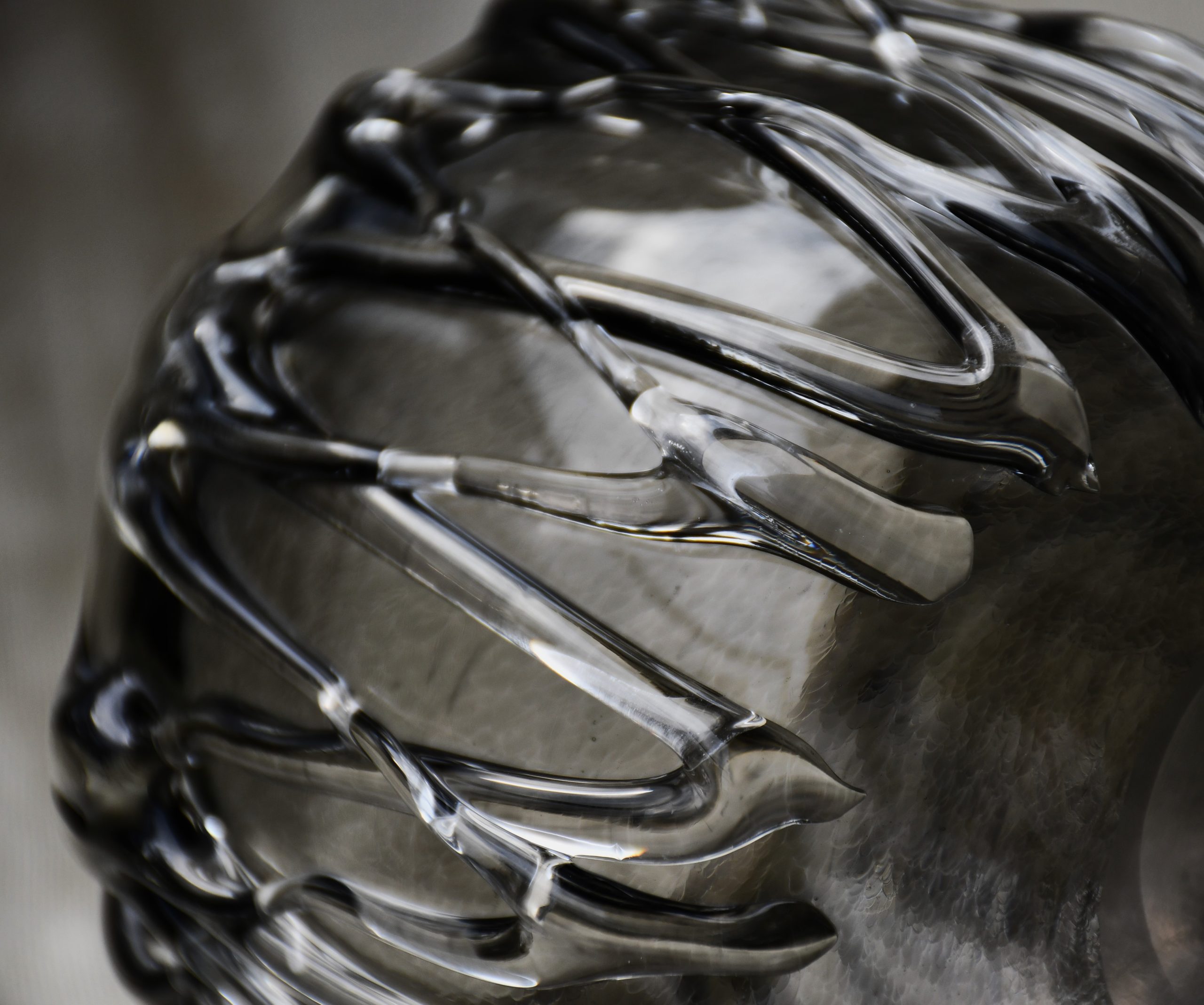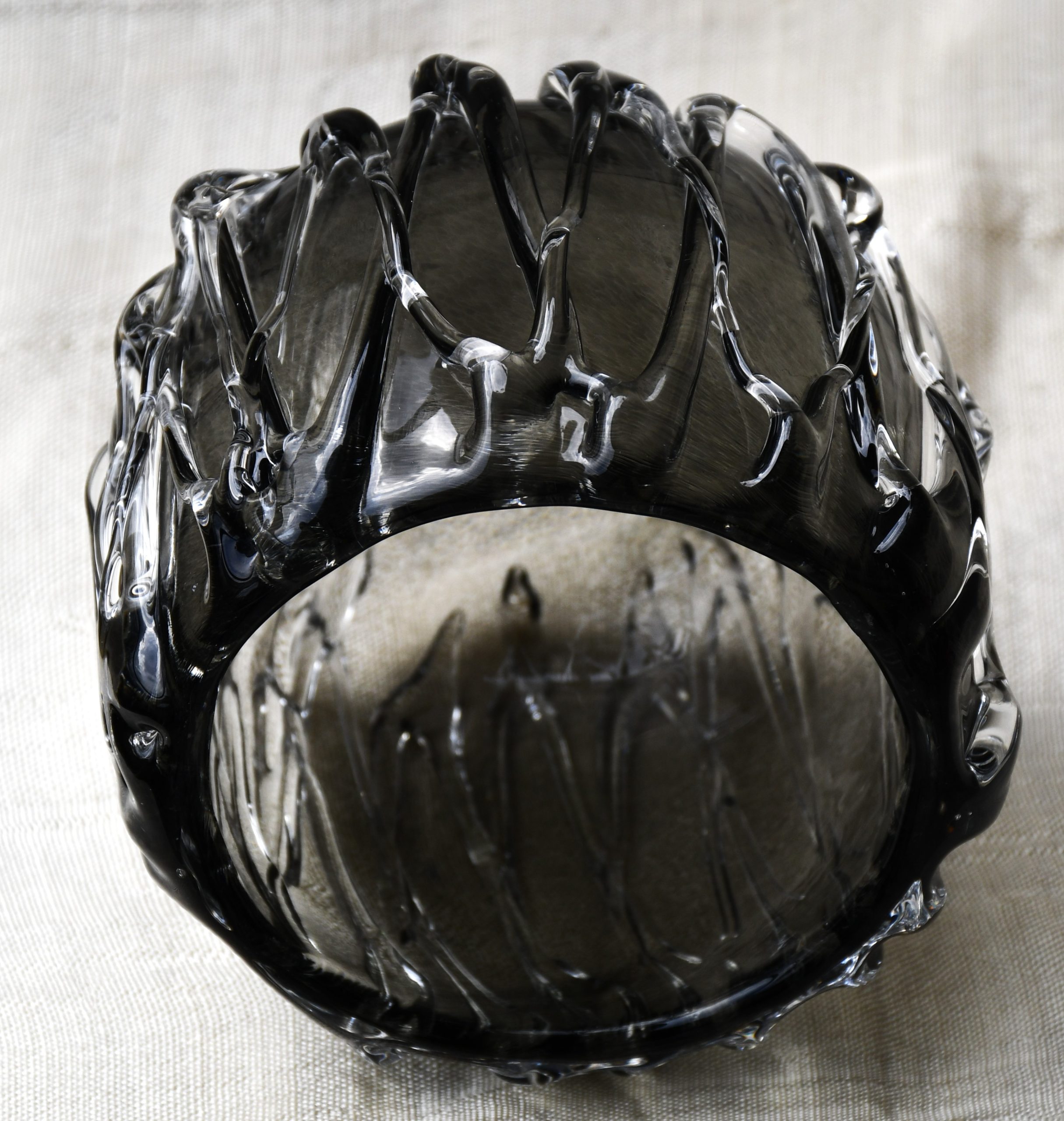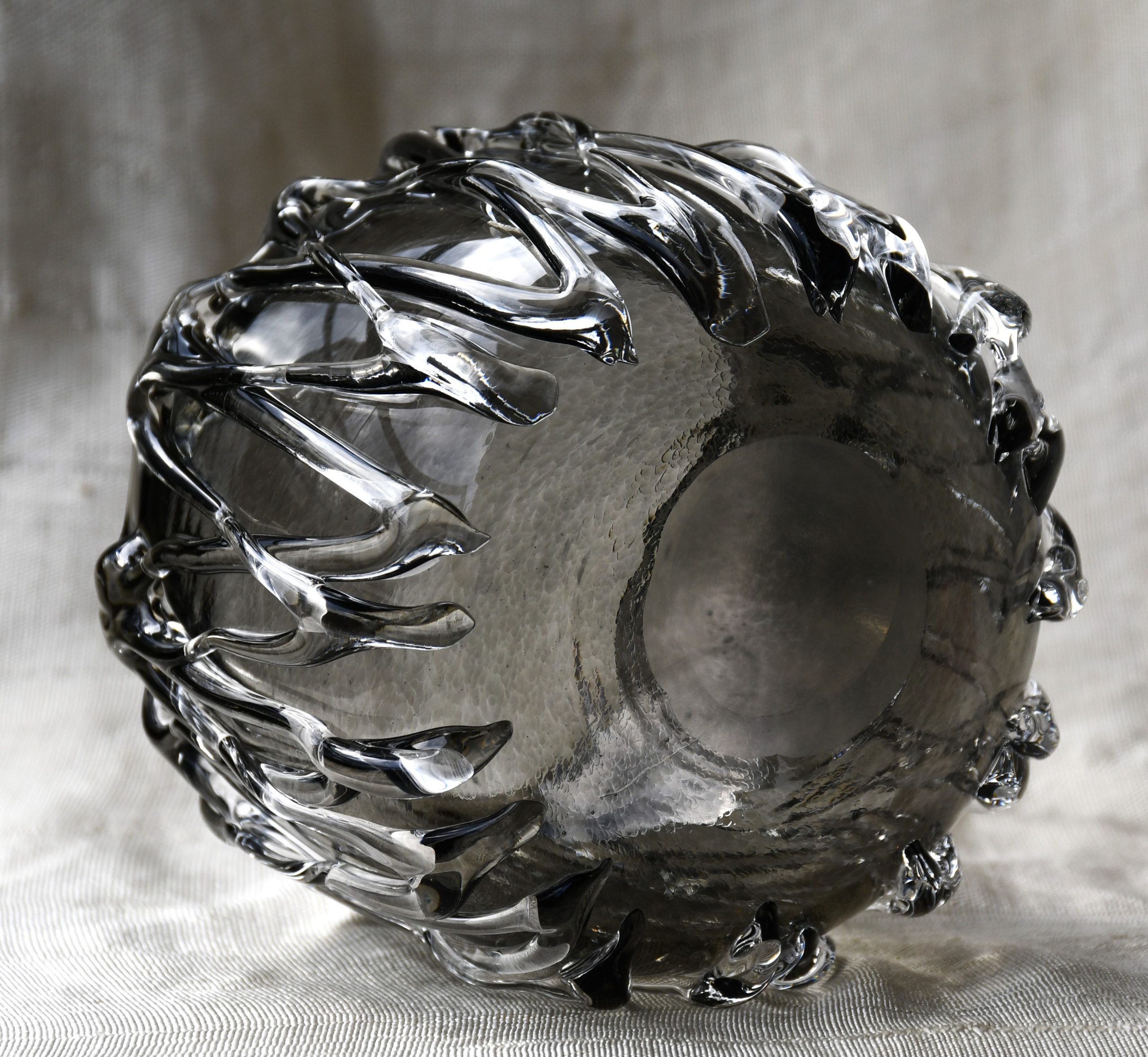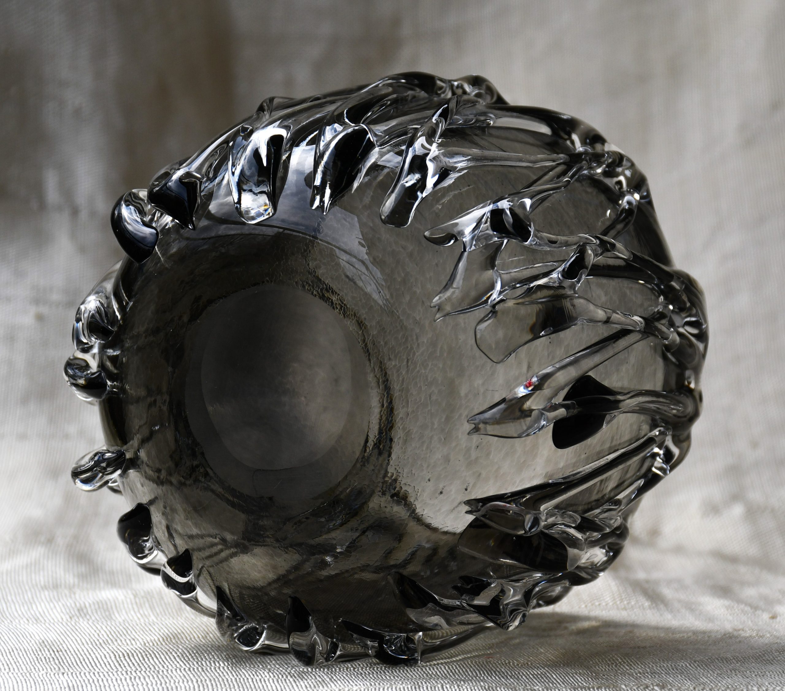 Изключително произведение на стъкларското изкуство. С „опушен“ цвят.