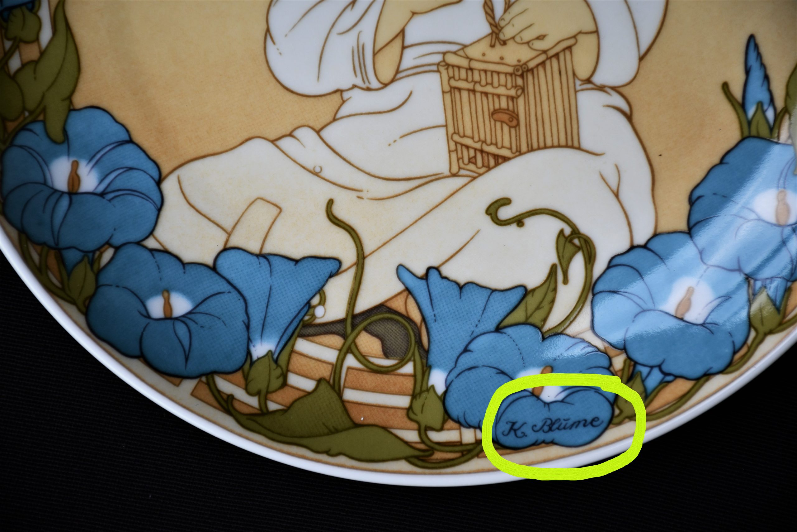 Дизайн на K. Blume – всички лицеви изображения са подписани. Вж. близък план – маркирано.