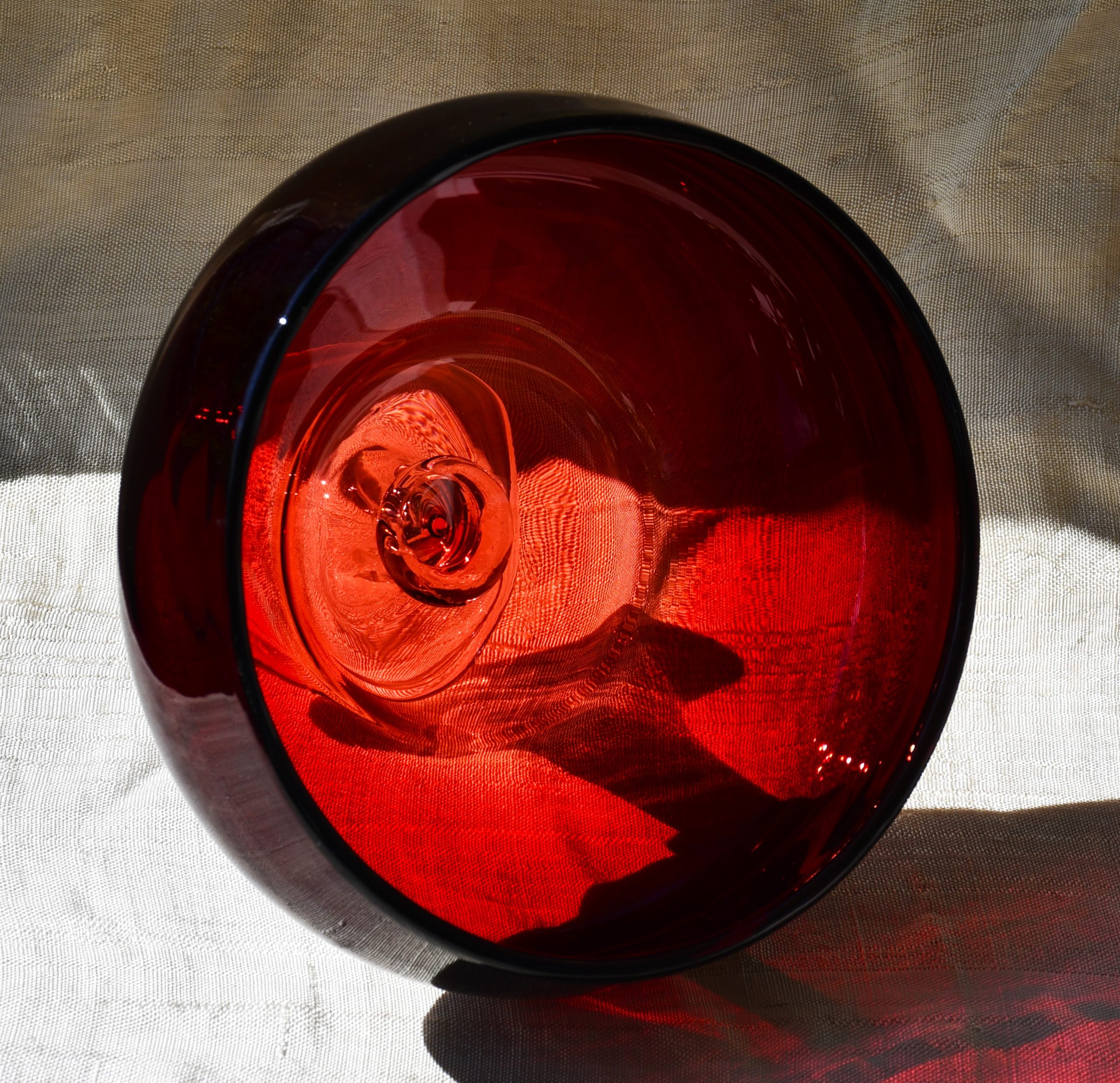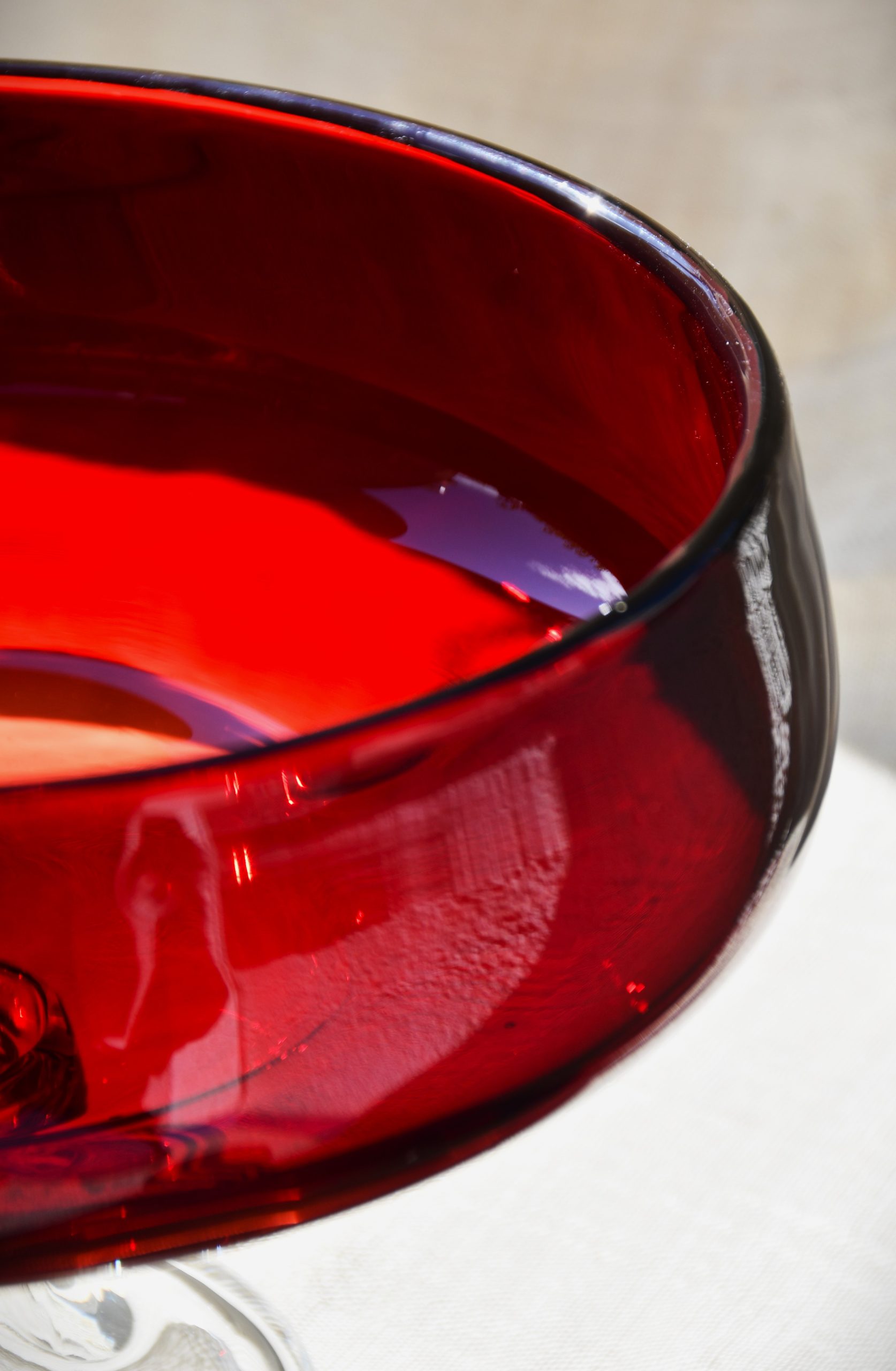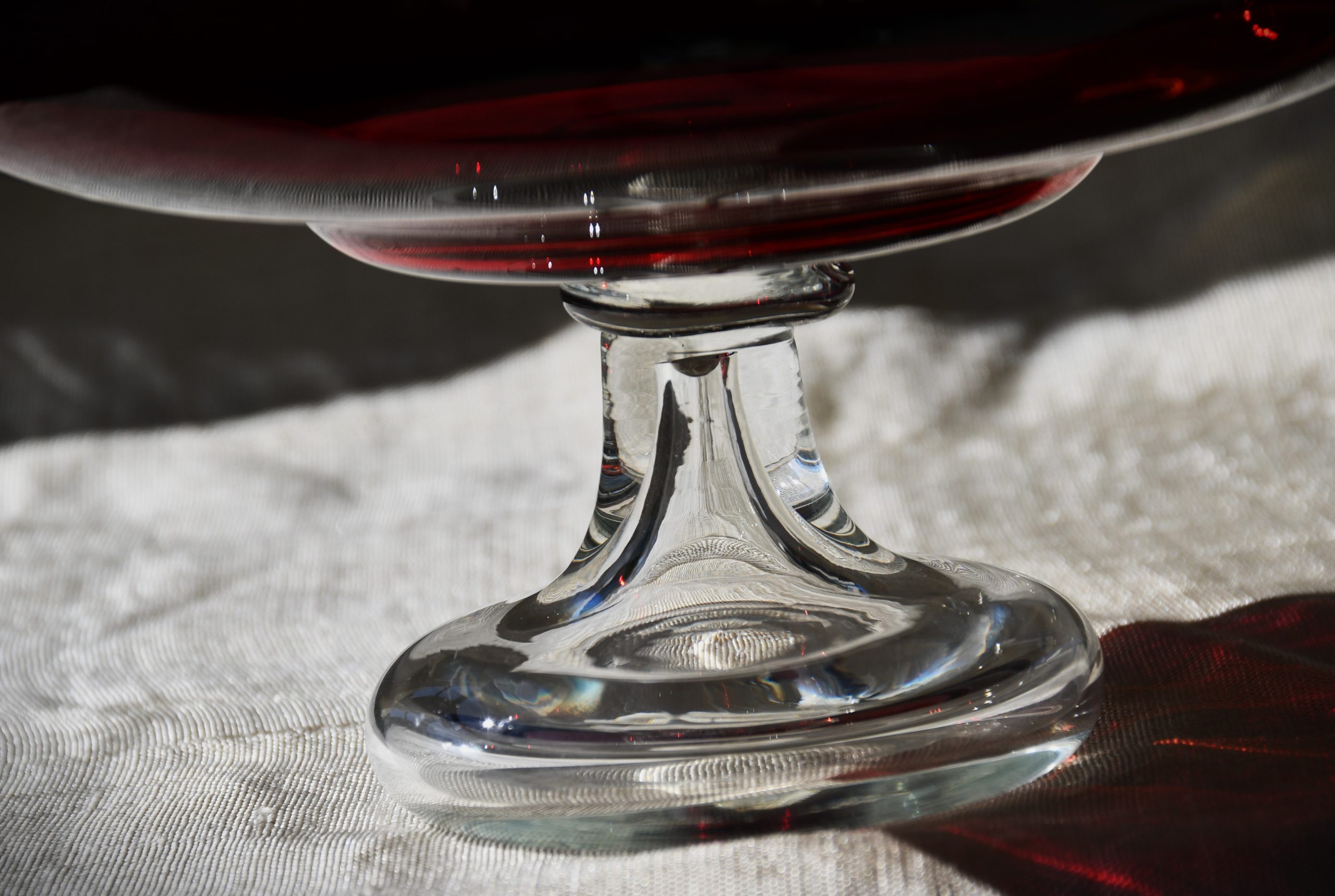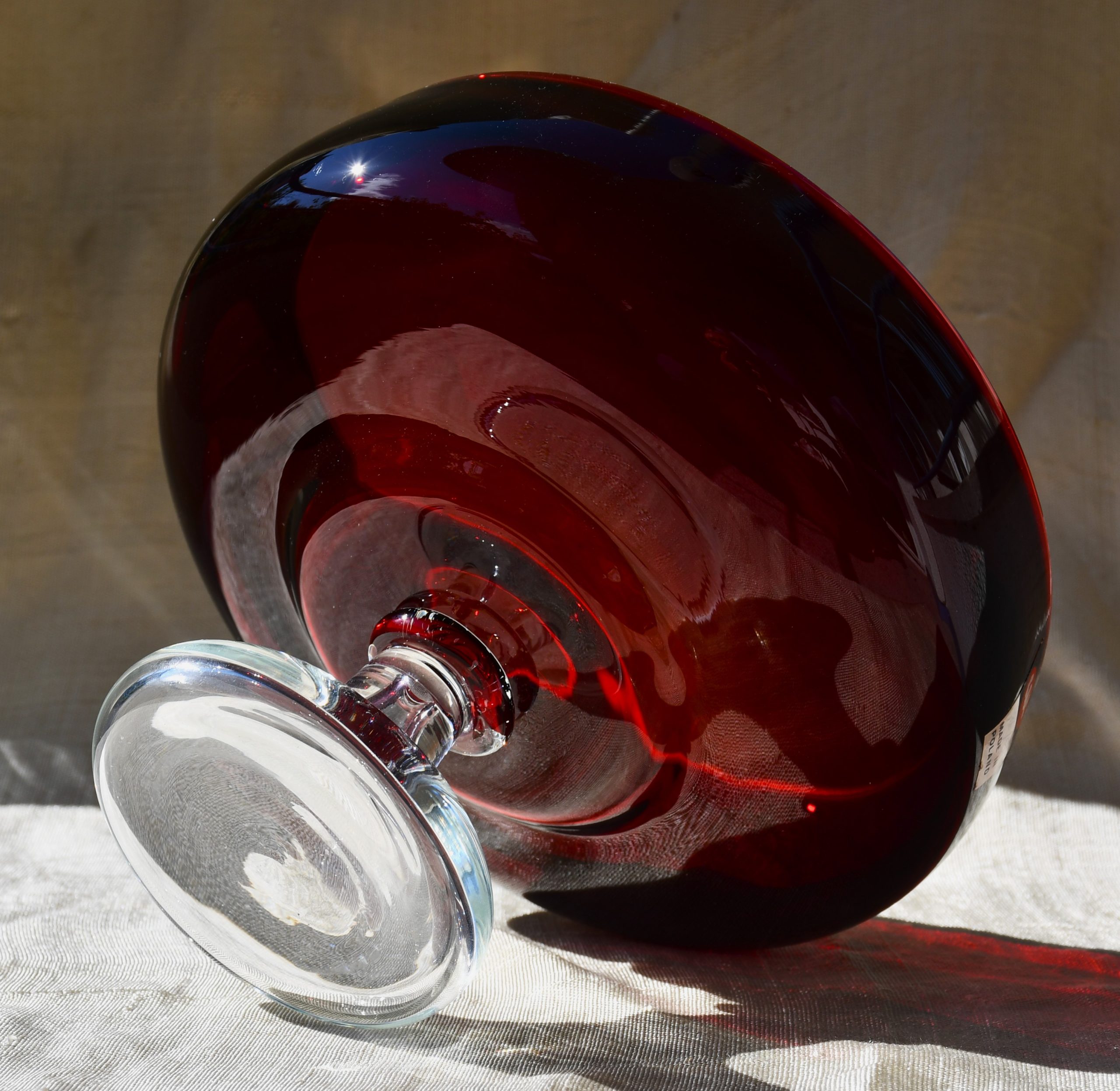 Изцяло ръчна работа. В изчистени MCM форми, вълнуващ червен цвят и безупречно владеене на занаята. Крачето е направено от прозрачно стъкло. Предмет с душа и топло присъствие в пространството на стаята.