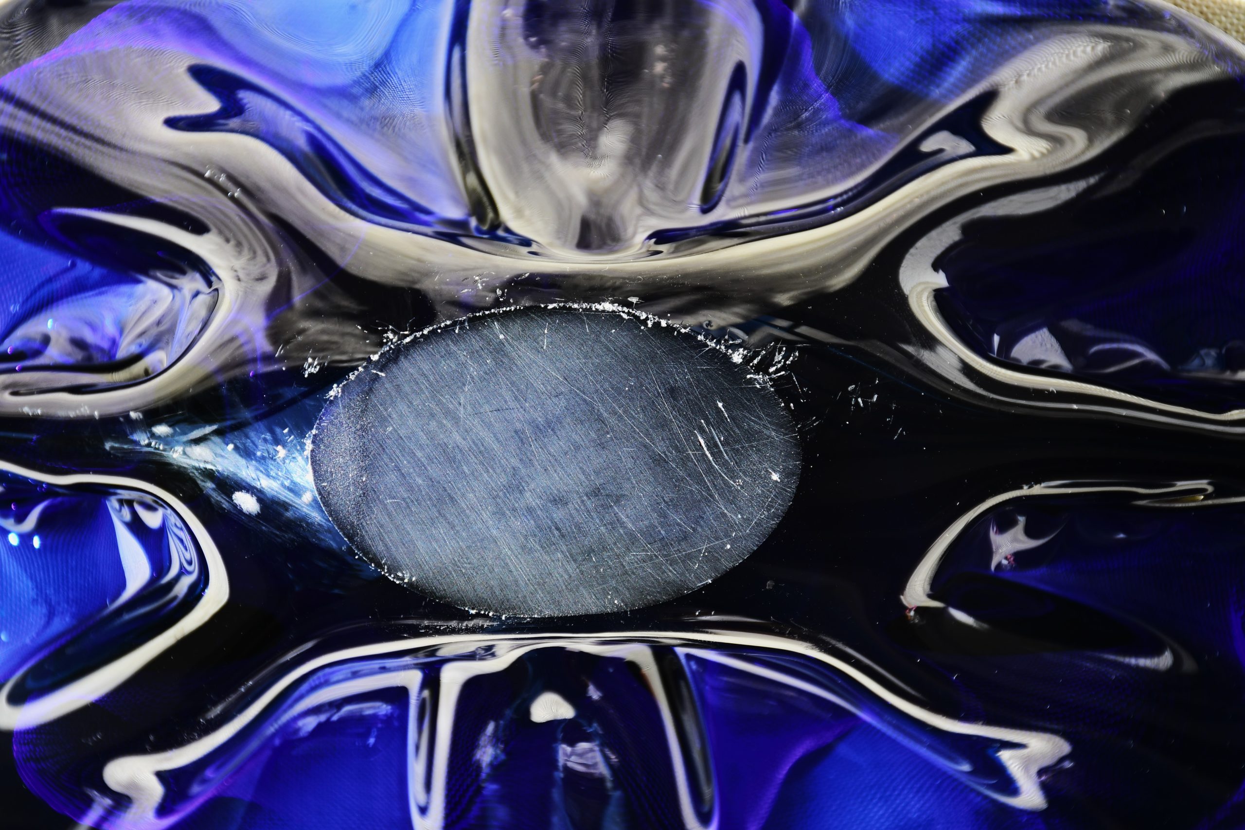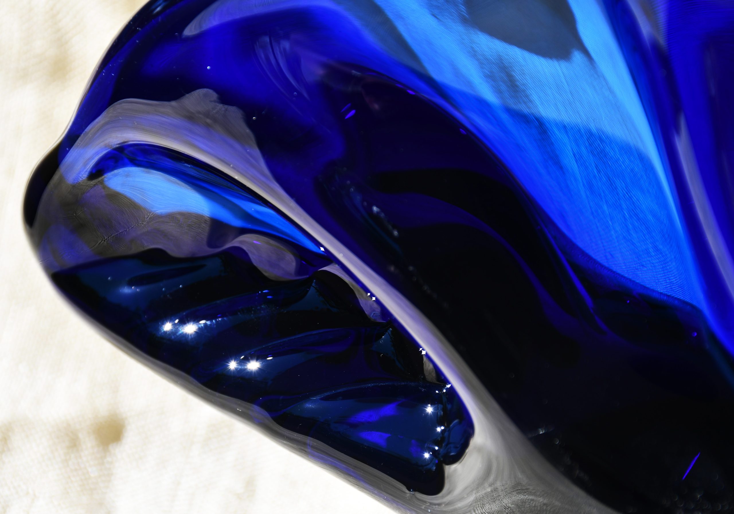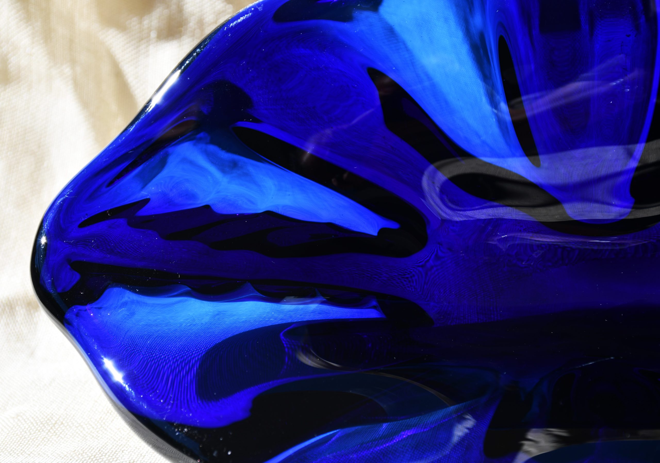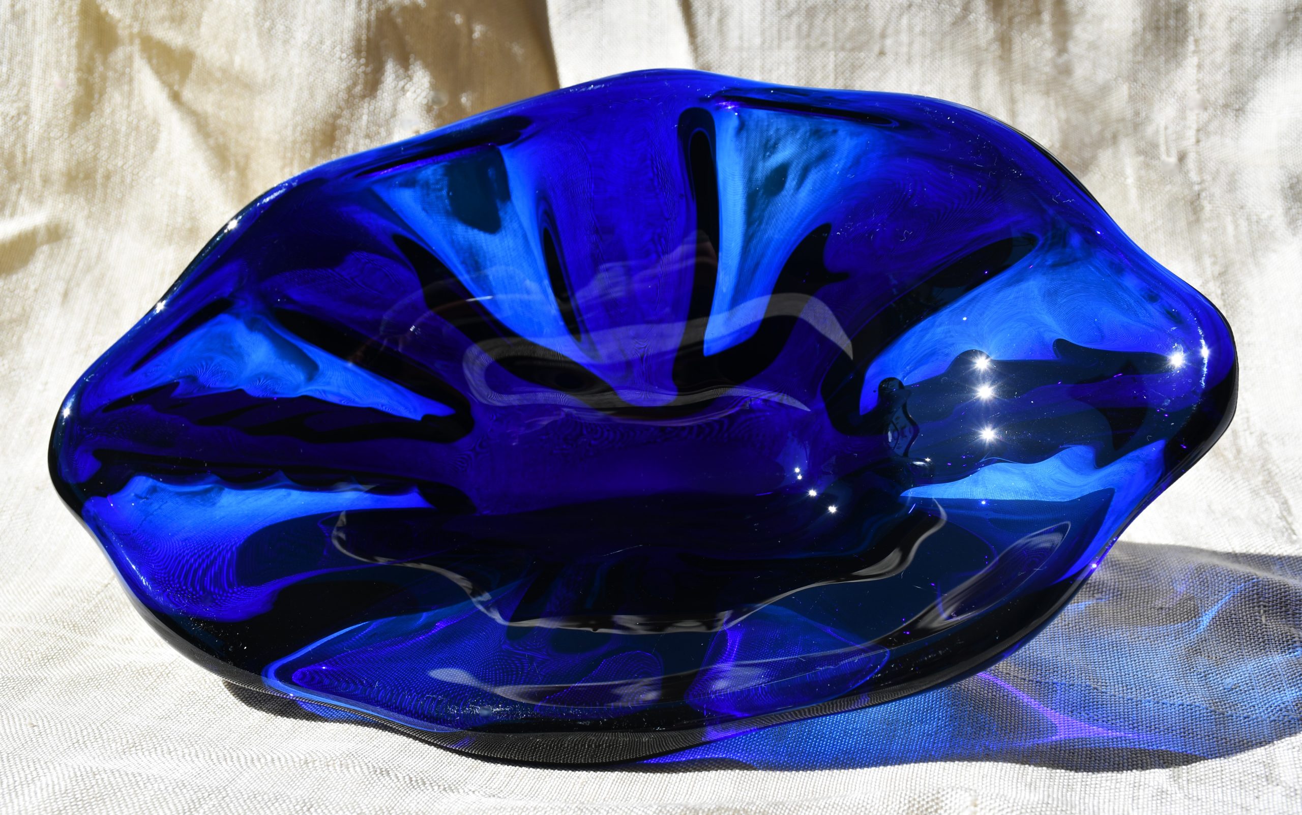 Прекрасен Mid-century modern артефакт, изцяло ръчна работа, в стилистиката на Beranek. Органична форма, от кобалтово стъкло – най-рядкото за този дизайн. Сериозно тегло – 1.450 kg.!