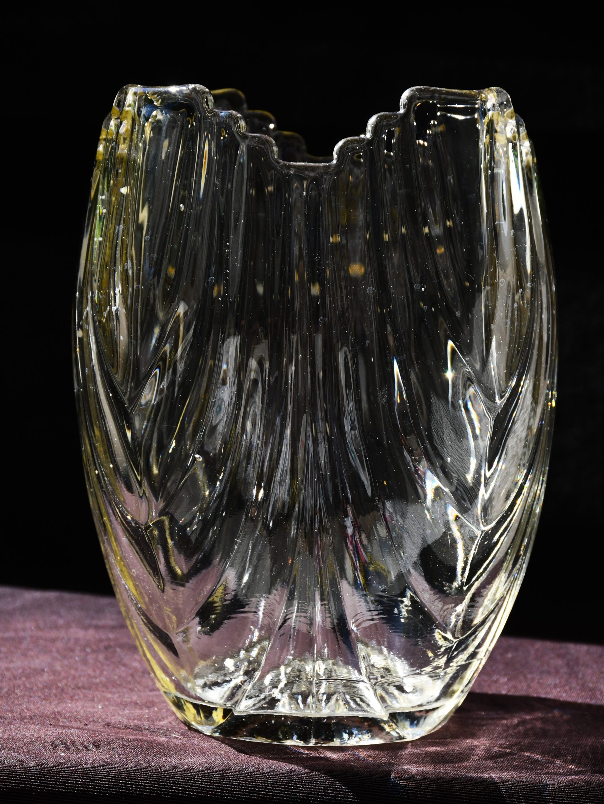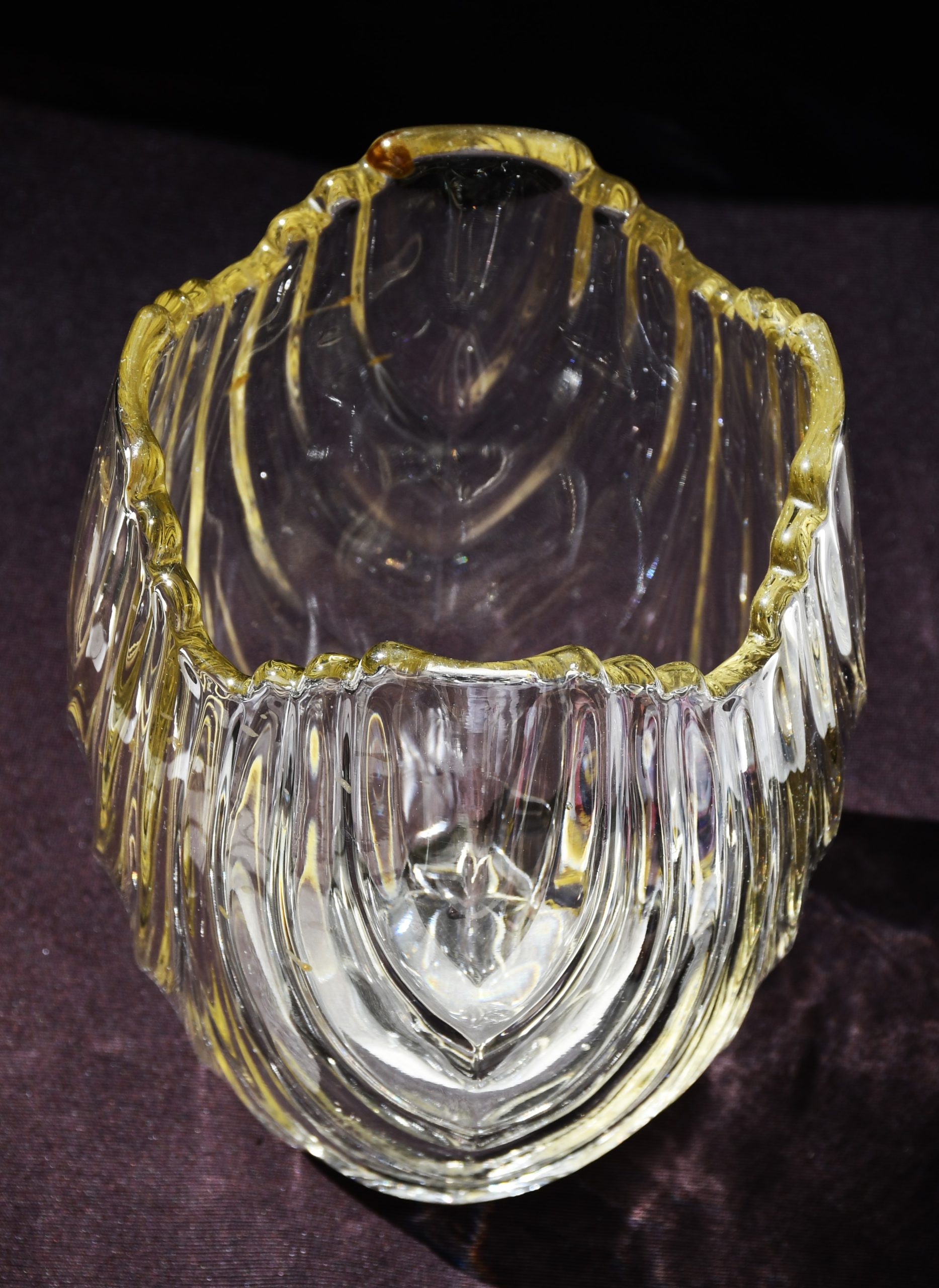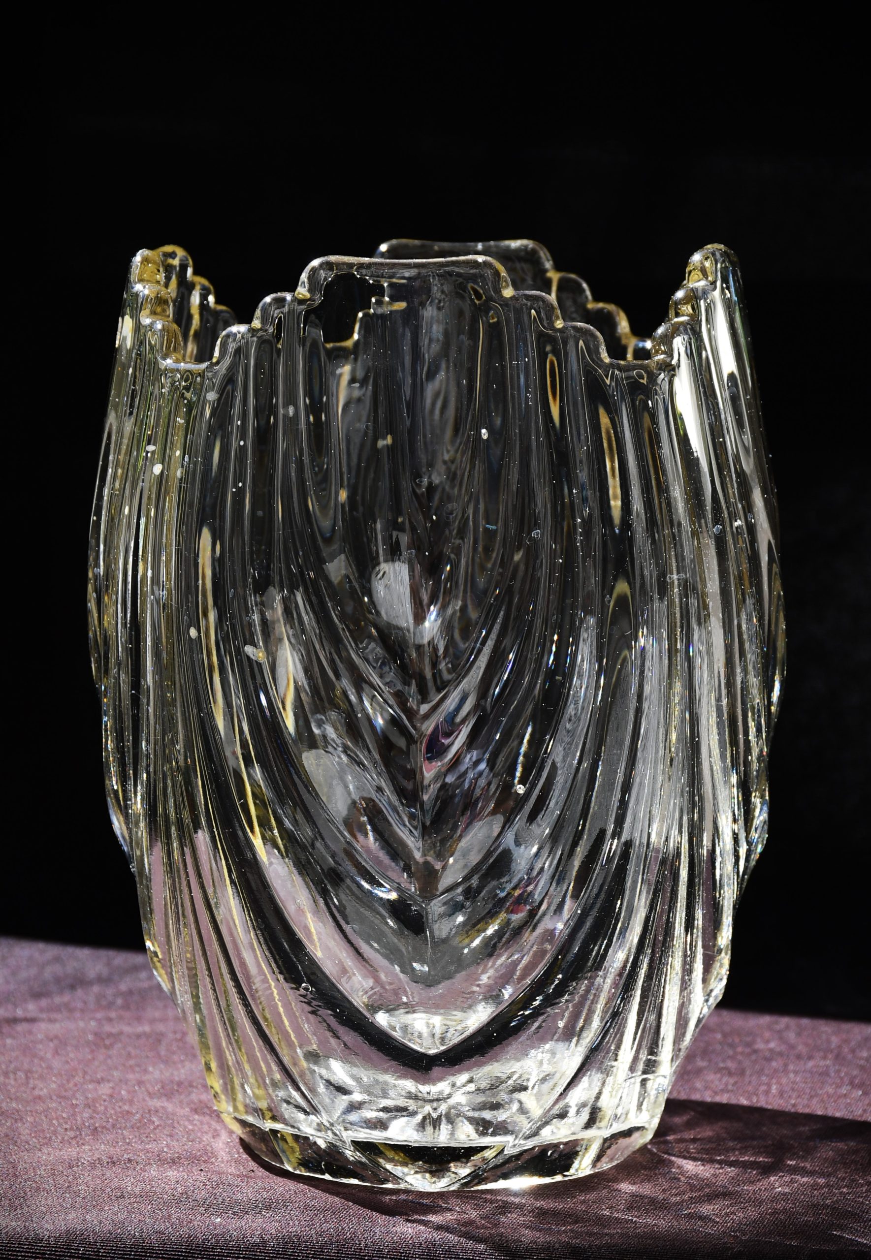 „Bohemia“ – Vintage ваза в стила на Art Deco – пресовано стъкло. Цвят: прозрачна с щипка цитрин.