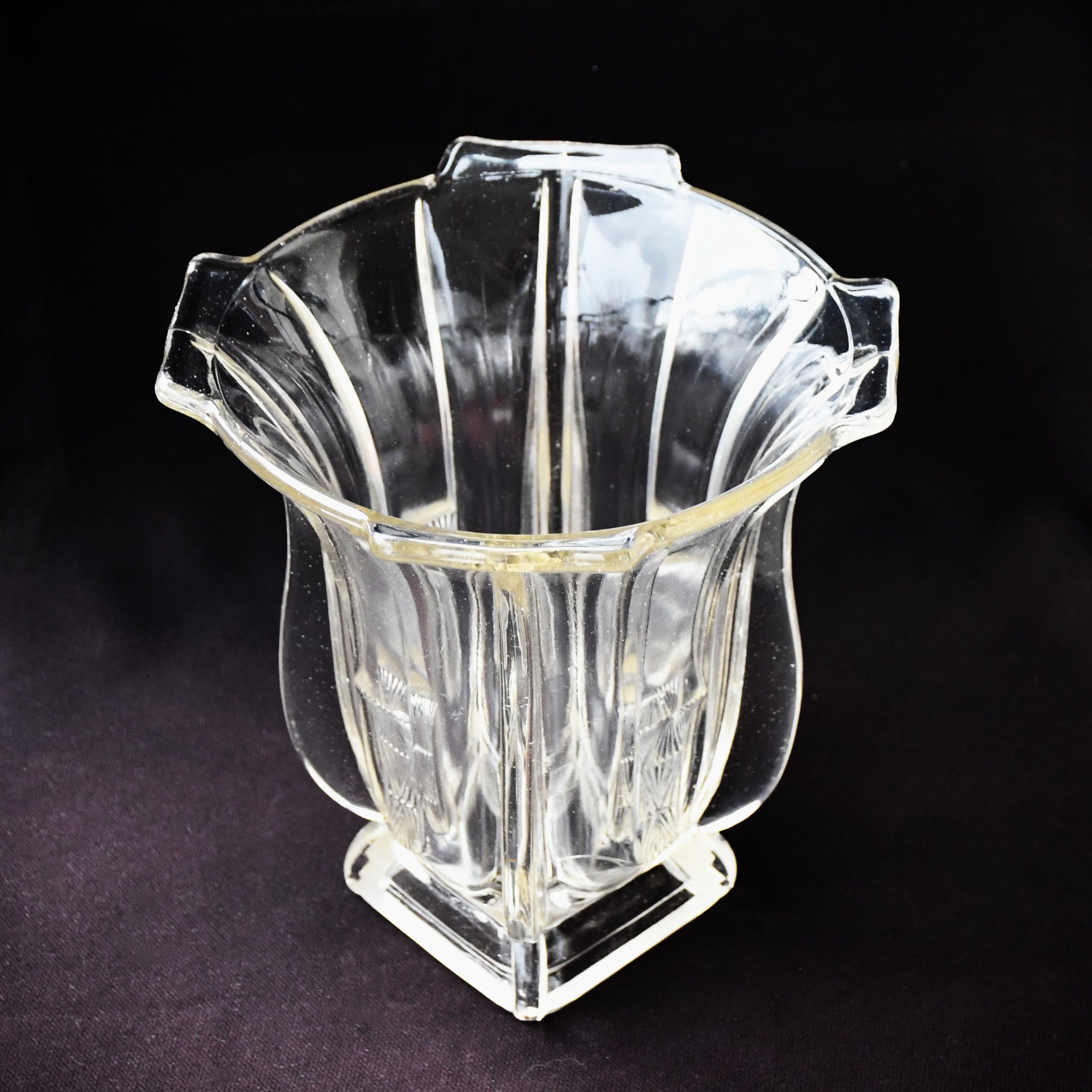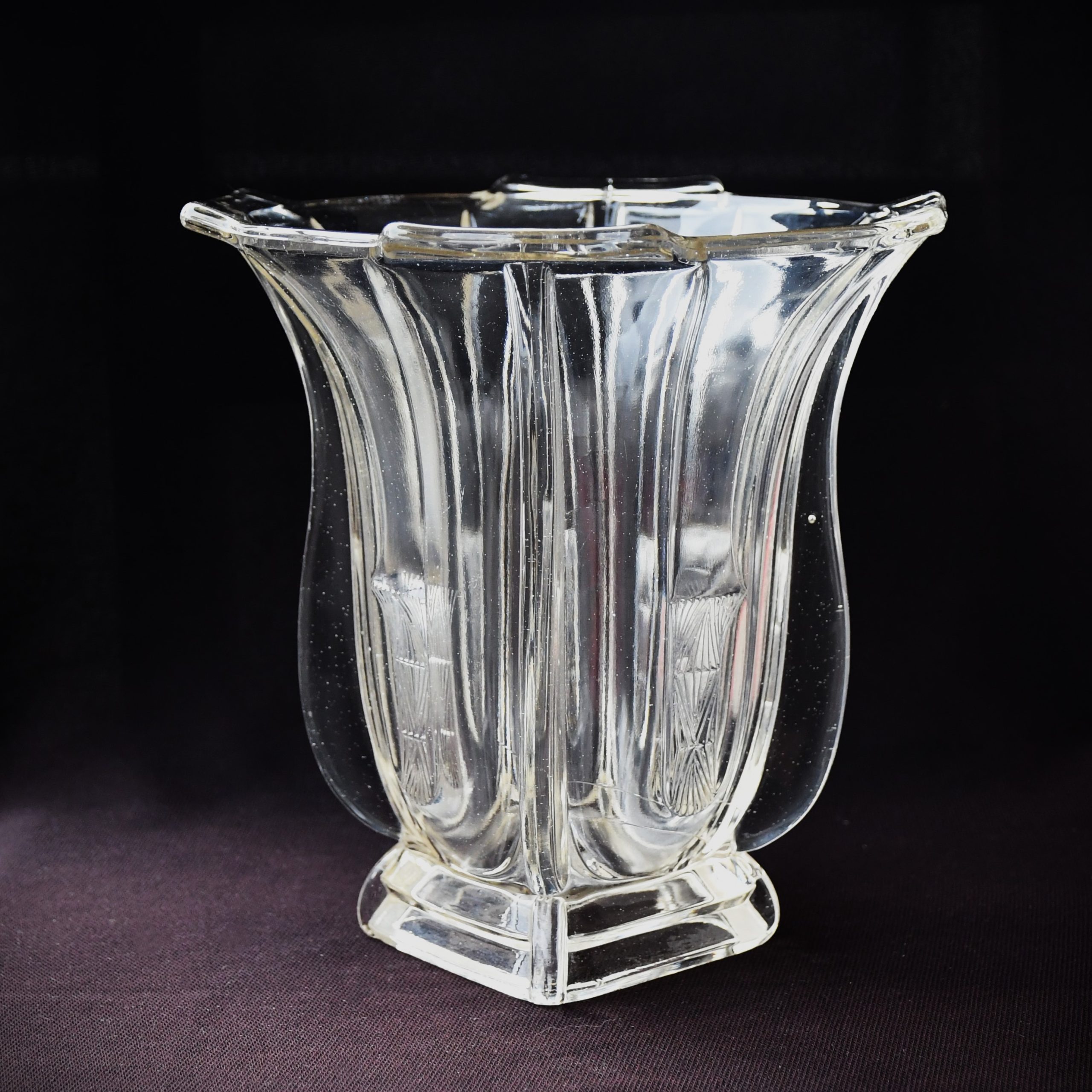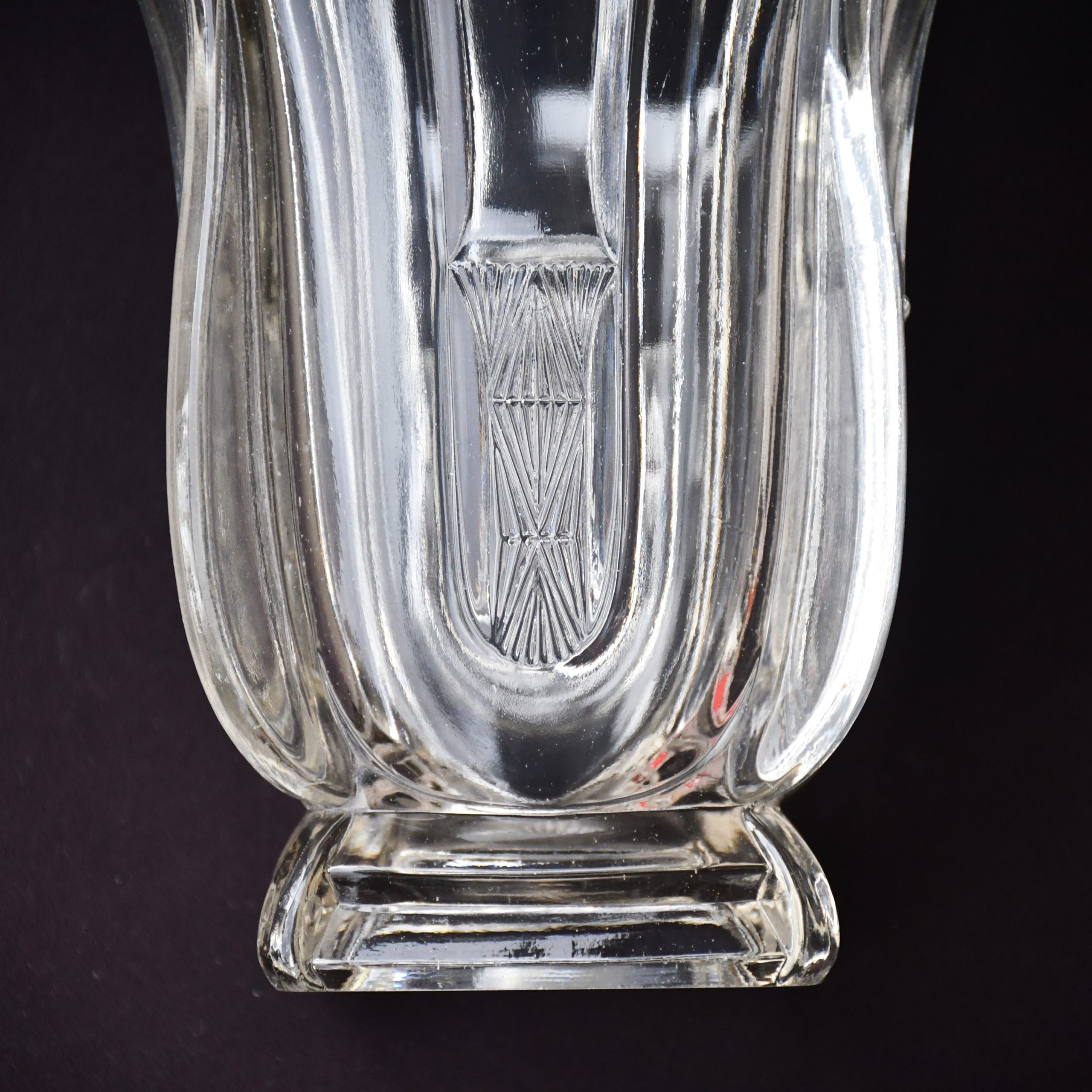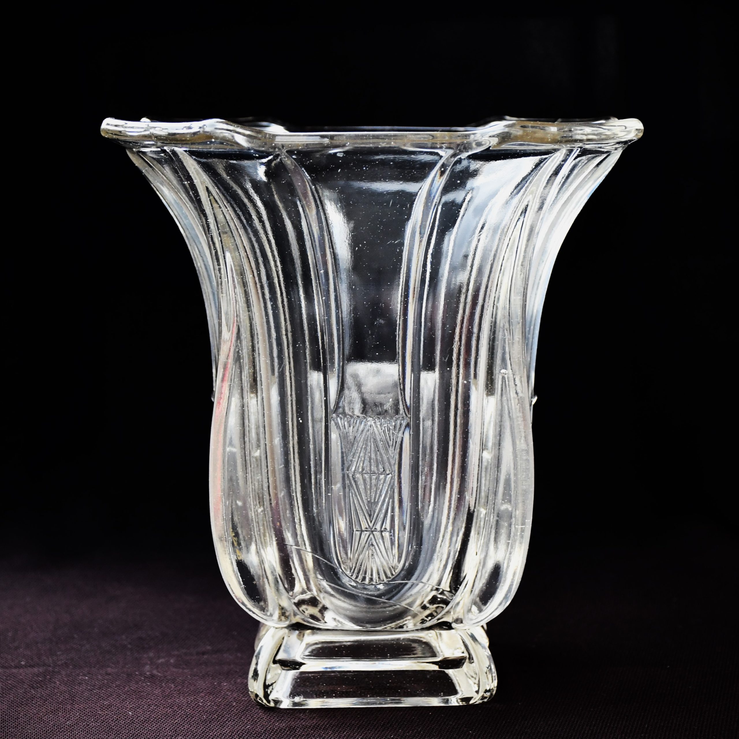 Walther Glass – модел “ Sigrid “ – Голяма Vintage ваза в стил Art Deco от пресовано стъкло. Цвят: прозрачна.